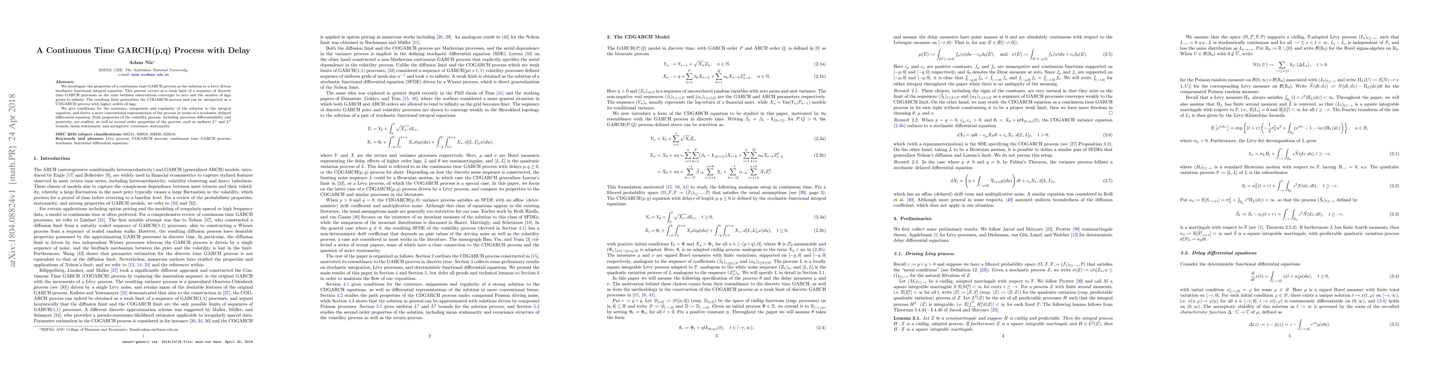 We investigate the properties of a continuous time GARCH process as the solution to a L\'evy driven stochastic functional integral equation. This process occurs as a weak limit of a sequence of discrete time GARCH processes as the time between observations converges to zero and the number of lags grows to infinity. The resulting limit generalizes the COGARCH process and can be interpreted as a COGARCH process with higher orders of lags. We give conditions for the existence, uniqueness and regularity of the solution to the integral equation, and derive a more conventional representation of the process in terms of a stochastic delayed differential equation. Path properties of the volatility process, including piecewise differentiability and positivity, are studied, as well as second order properties of the process, such as uniform L1 and L2 bounds, mean stationarity and asymptotic covariance stationarity.