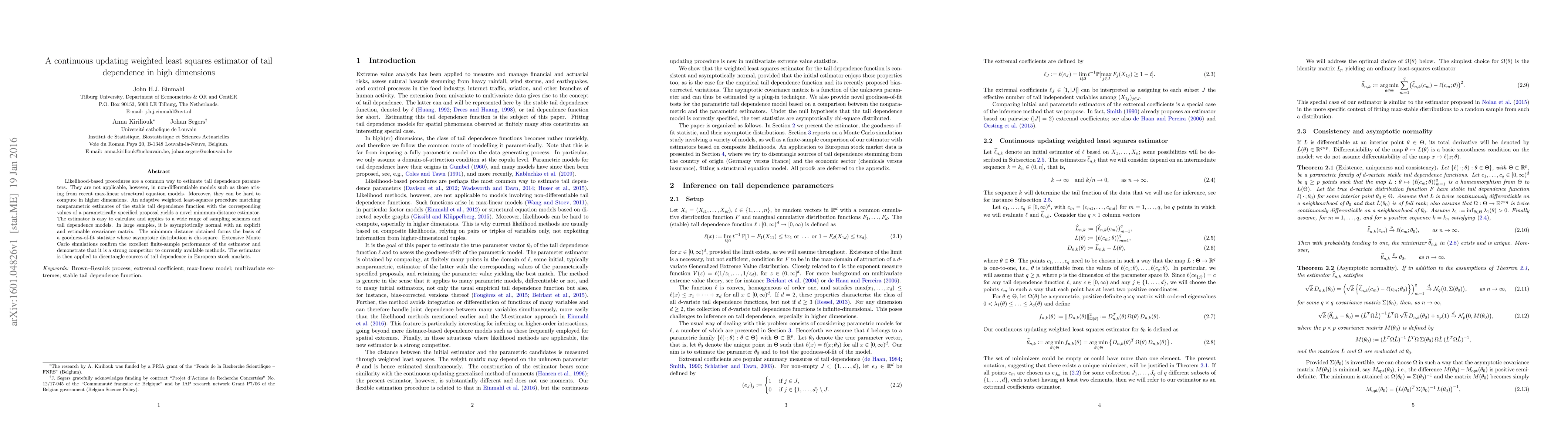 This paper proposes a novel adaptive weighted least-squares estimator for tail dependence in high-dimensional data, overcoming the limitations of likelihood-based methods. The estimator demonstrates strong finite-sample performance and is applied to analyze tail dependence in European stock markets.