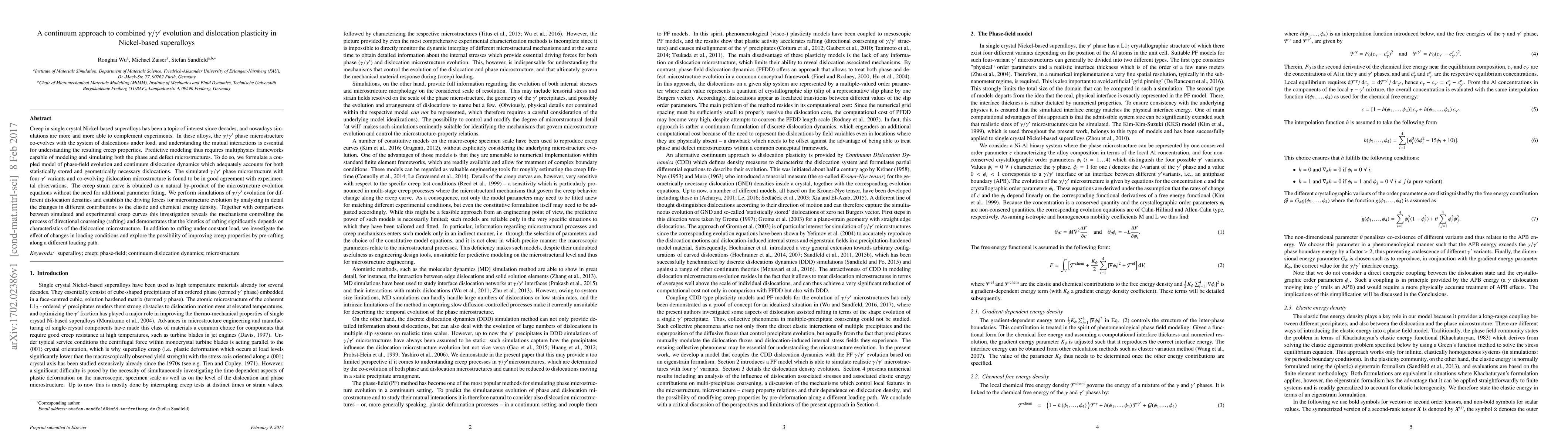 This paper presents a coupled model for simulating the evolution of $\gamma/\gamma'$ phase microstructure and dislocation plasticity in Nickel-based superalloys under creep conditions. The model accurately predicts the microstructure evolution and creep strain curves, revealing the mechanisms of directional coarsening (rafting) and the impact of dislocation microstructure on rafting kinetics.