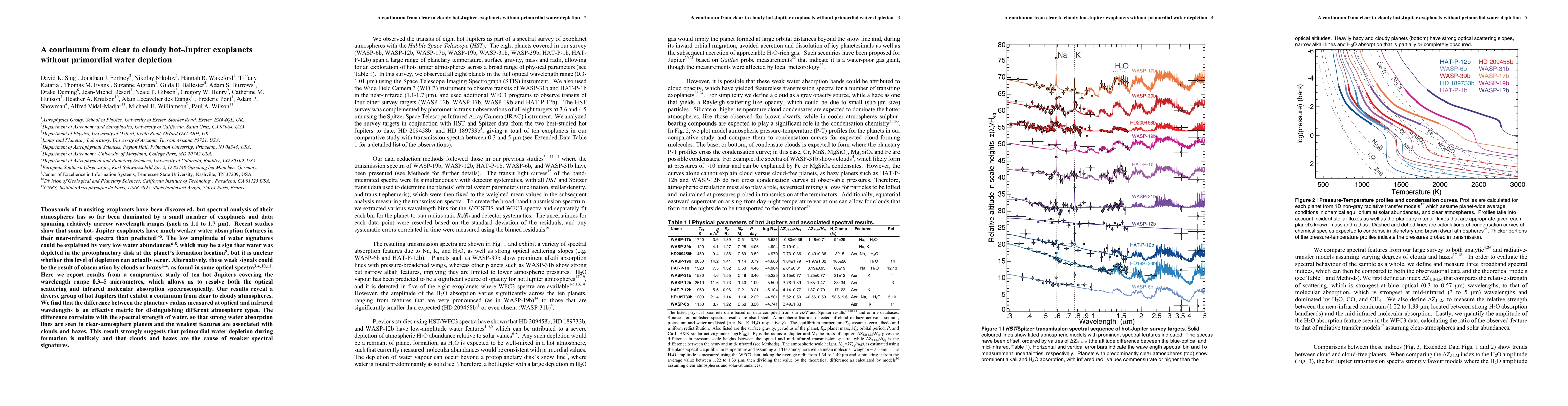 This study examines ten hot-Jupiter exoplanets across a broad spectral range, revealing a continuum from clear to cloudy atmospheres. The findings suggest that weaker water absorption features are due to cloud and haze obscuration rather than primordial water depletion.