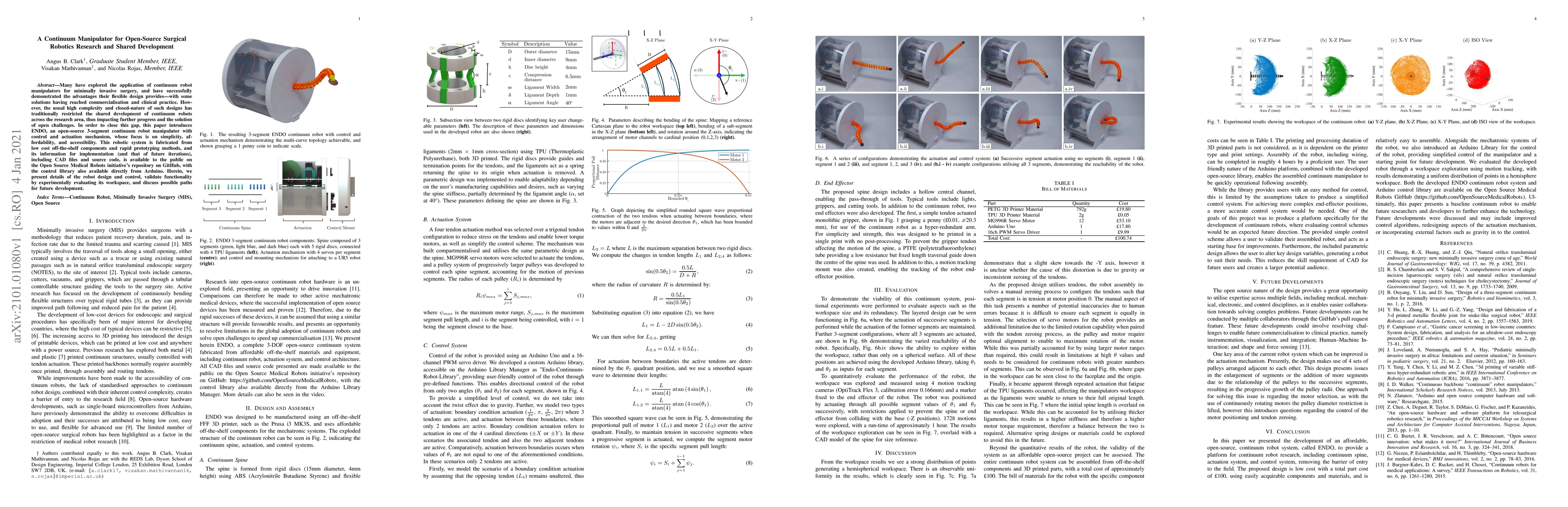 Researchers introduced ENDO, an open-source 3-segment continuum robot manipulator designed for shared development in surgical robotics research, with its CAD files, source code, and control library available on GitHub.