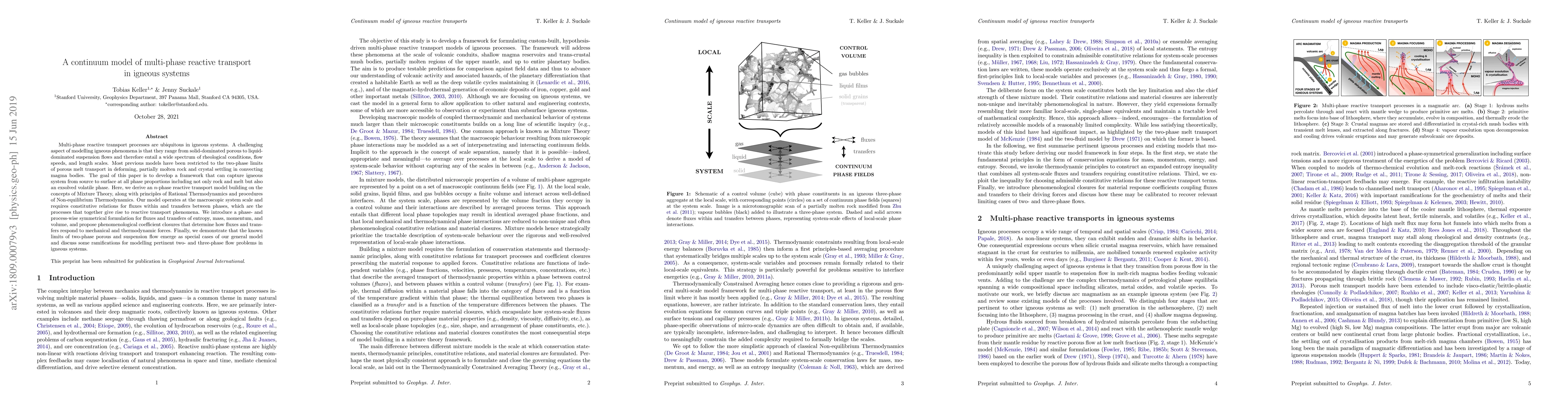 This paper develops a continuum model for multi-phase reactive transport in igneous systems, encompassing solid, melt, and volatile phases. It utilizes Mixture Theory, Rational Thermodynamics, and Non-equilibrium Thermodynamics to create a comprehensive n-phase reactive transport framework applicable across various rheological conditions and flow regimes.