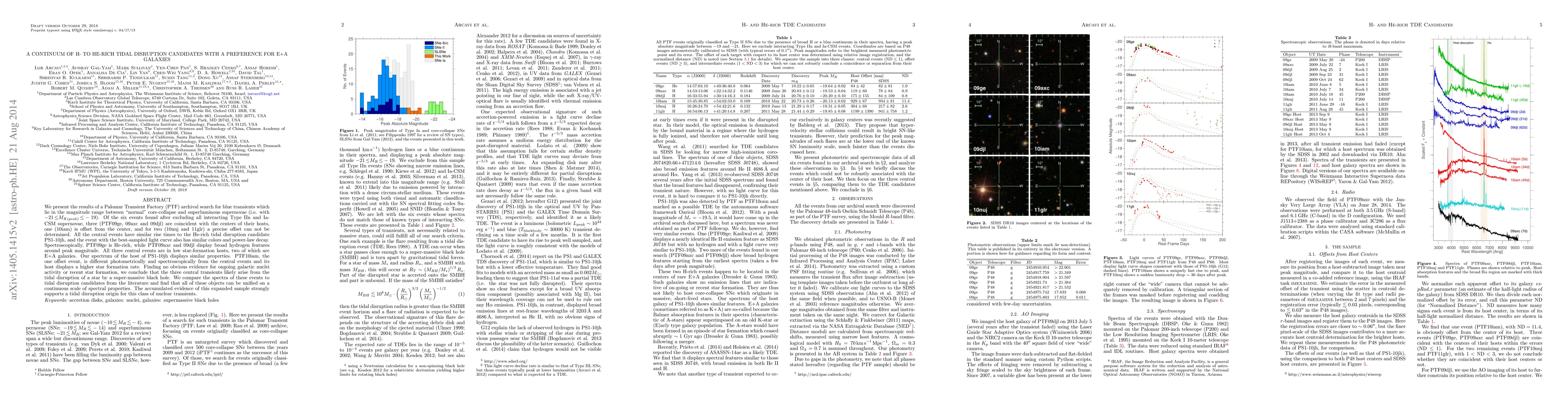 We present the results of a Palomar Transient Factory (PTF) archival search for blue transients which lie in the magnitude range between "normal" core-collapse and superluminous supernovae (i.e. with $-21\,{\leq}M_{R\,(peak)}\,{\leq}-19$). Of the six events found after excluding all interacting Type~IIn and Ia-CSM supernovae, three (PTF09ge, 09axc and 09djl) are coincident with the centers of their hosts, one (10iam) is offset from the center, and for two (10nuj and 11glr) a precise offset can not be determined. All the central events have similar rise times to the He-rich tidal disruption candidate PS1-10jh, and the event with the best-sampled light curve also has similar colors and power-law decay. Spectroscopically, PTF09ge is He-rich, while PTF09axc and 09djl display broad hydrogen features around peak magnitude. All three central events are in low star-formation hosts, two of which are E+A galaxies. Our spectrum of the host of PS1-10jh displays similar properties. PTF10iam, the one offset event, is different photometrically and spectroscopically from the central events and its host displays a higher star formation rate. Finding no obvious evidence for ongoing galactic nuclei activity or recent star formation, we conclude that the three central transients likely arise from the tidal disruption of a star by a super-massive black hole. We compare the spectra of these events to tidal disruption candidates from the literature and find that all of these objects can be unified on a continuous scale of spectral properties. The accumulated evidence of this expanded sample strongly supports a tidal disruption origin for this class of nuclear transients.