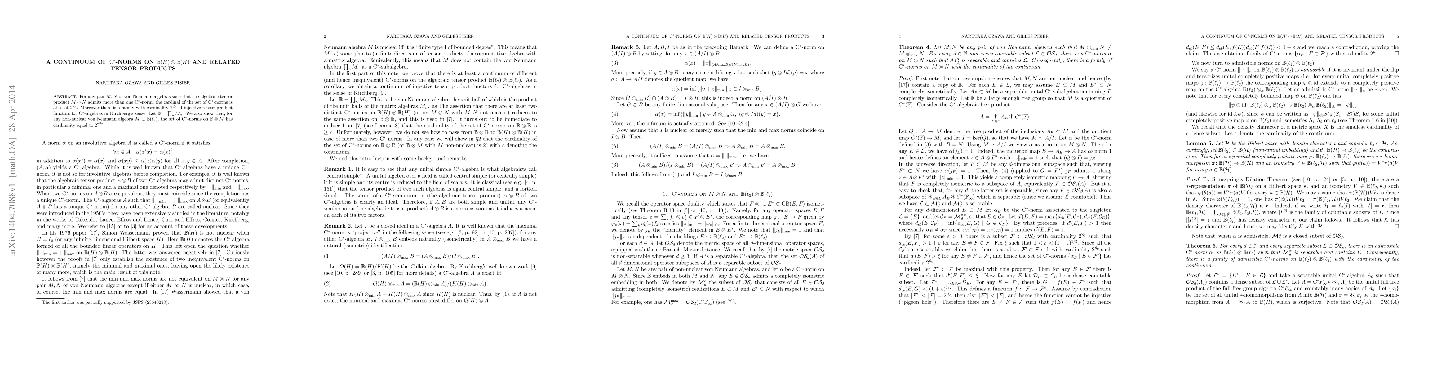 For any pair $M,N$ of von Neumann algebras such that the algebraic tensor product $M\otimes N$ admits more than one $\mathrm{C}^*$-norm, the cardinal of the set of $\mathrm{C}^*$-norms is at least $ {2^{\aleph_0}}$. Moreover there is a family with cardinality $ {2^{\aleph_0}}$ of injective tensor product functors for $\mathrm{C}^*$-algebras in Kirchberg's sense. Let $\IB=\prod_n M_{n}$. We also show that, for any non-nuclear von Neumann algebra $M\subset \IB(\ell_2)$, the set of $\mathrm{C}^*$-norms on $\IB \otimes M$ has cardinality equal to $2^{2^{\aleph_0}}$.