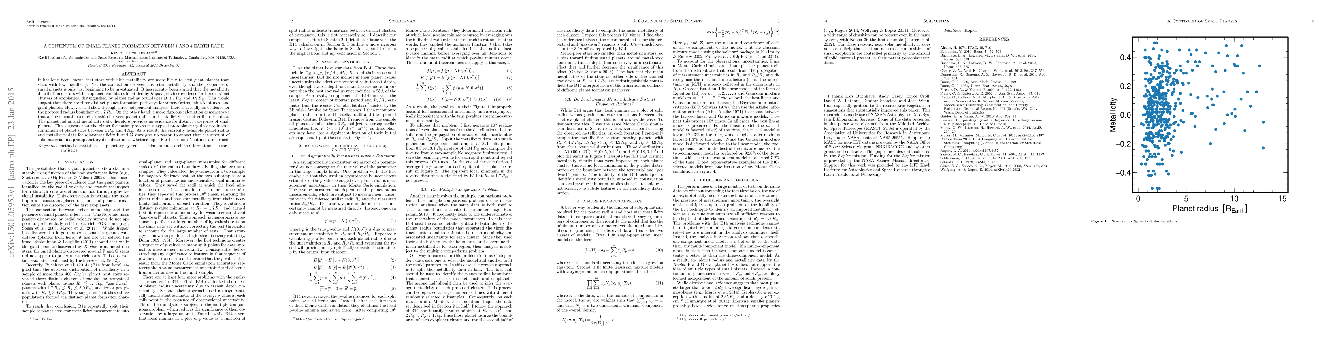 It has long been known that stars with high metallicity are more likely to host giant planets than stars with low metallicity. Yet the connection between host star metallicity and the properties of small planets is only just beginning to be investigated. It has recently been argued that the metallicity distribution of stars with exoplanet candidates identified by Kepler provides evidence for three distinct clusters of exoplanets, distinguished by planet radius boundaries at 1.7 R_Earth and 3.9 R_Earth. This would suggest that there are three distinct planet formation pathways for super-Earths, mini-Neptunes, and giant planets. However, as I show through three independent analyses, there is actually no evidence for the proposed radius boundary at 1.7 R_Earth. On the other hand, a more rigorous calculation demonstrates that a single, continuous relationship between planet radius and metallicity is a better fit to the data. The planet radius and metallicity data therefore provides no evidence for distinct categories of small planets. This suggests that the planet formation process in a typical protoplanetary disk produces a continuum of planet sizes between 1 R_Earth and 4 R_Earth. As a result, the currently available planet radius and metallicity data for solar-metallicity F and G stars give no reason to expect that the amount of solid material in a protoplanetary disk determines whether super-Earths or mini-Neptunes are formed.