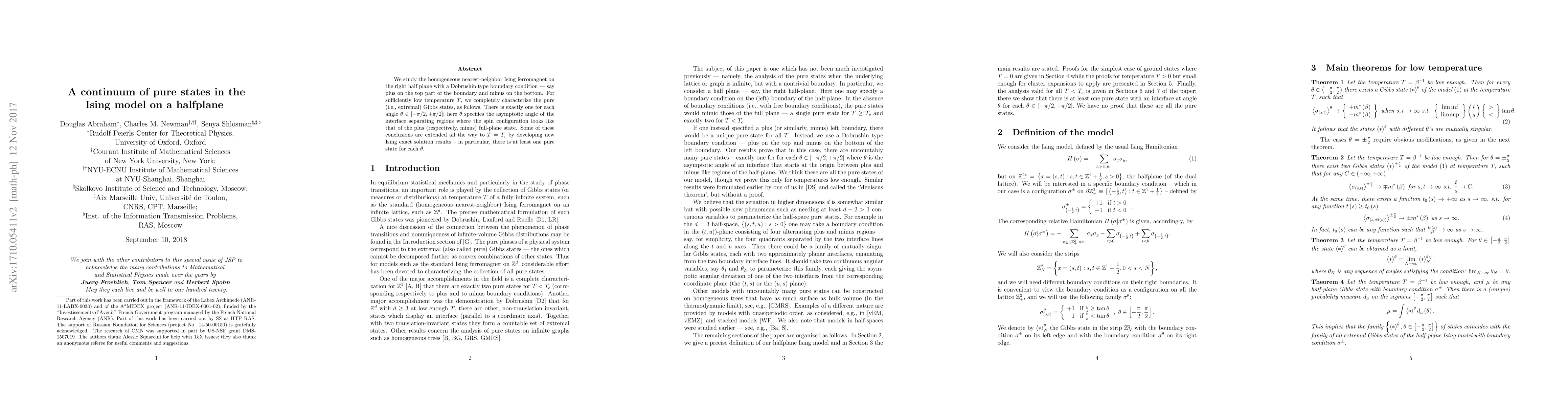 This paper studies a variant of the Ising model on a half-plane with specific boundary conditions, showing that there is exactly one pure Gibbs state for each angle in a range, even at the critical temperature.