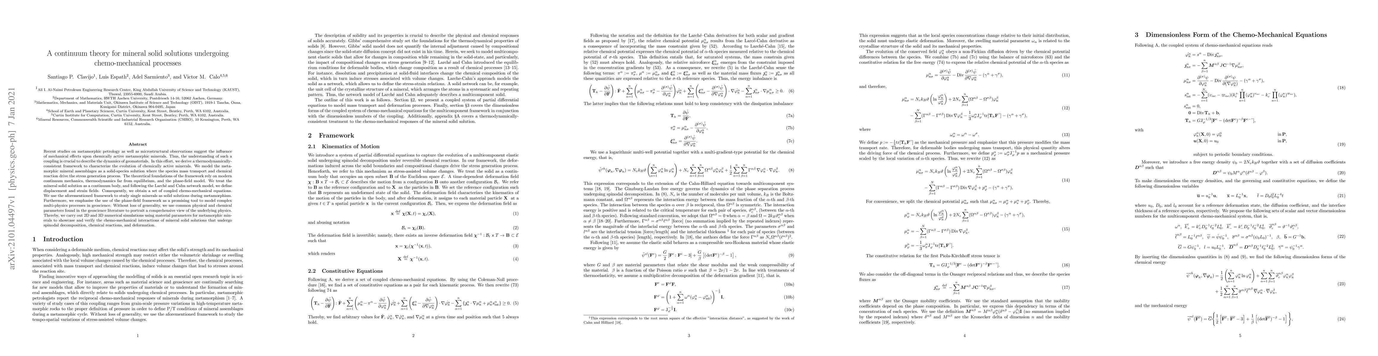 This paper develops a thermodynamically consistent continuum theory to model chemo-mechanical processes in chemically active metamorphic minerals. It uses modern continuum mechanics and the phase-field model to describe the evolution of mineral solid solutions, focusing on their mass transport, chemical reactions, and stress generation during metamorphism.