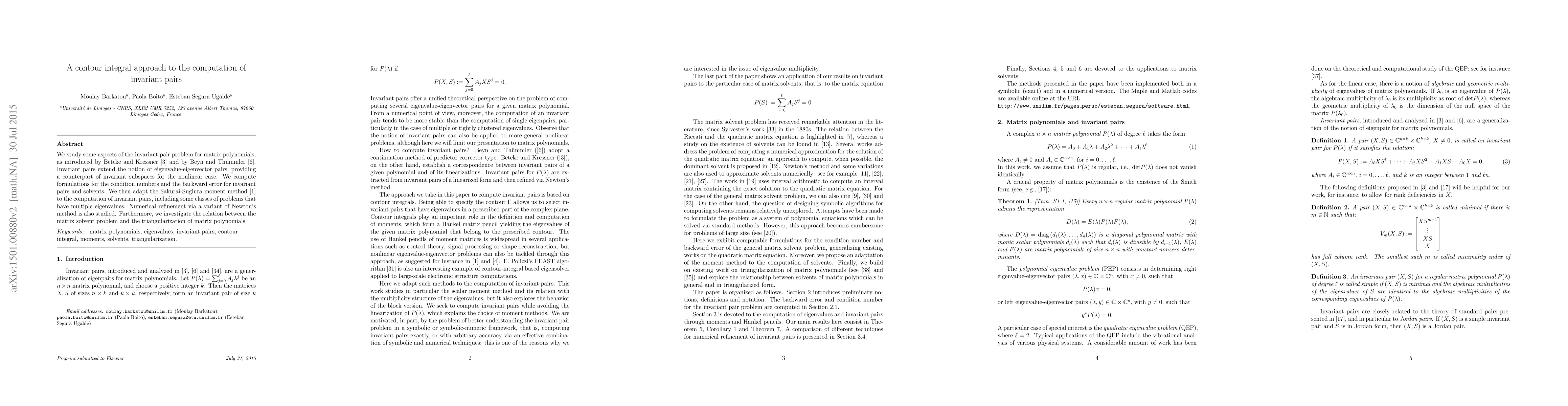 Researchers developed a new approach to computing invariant pairs for matrix polynomials, including methods for estimating condition numbers and backward errors, and exploring the relation with triangularization of polynomials.