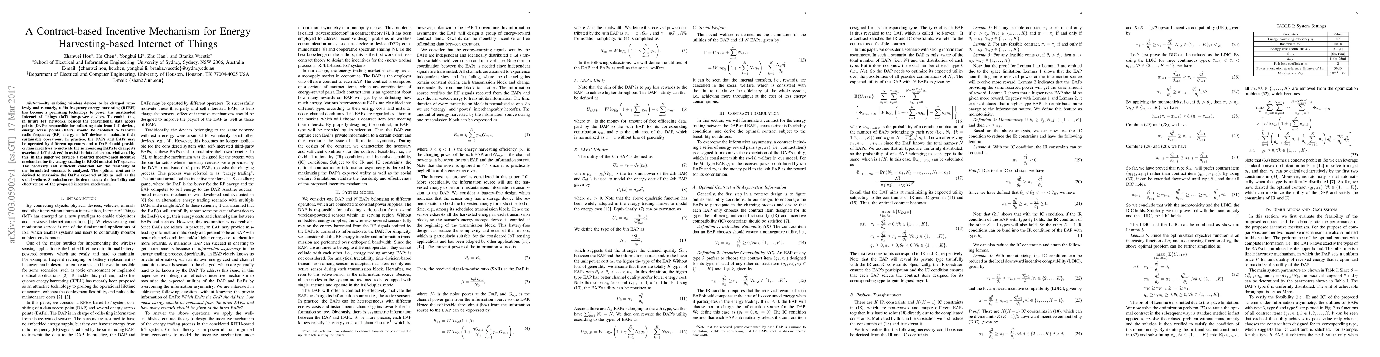 This paper proposes a contract-based incentive mechanism to motivate energy access points (EAPs) to charge IoT devices for data collection, leveraging radio frequency energy harvesting (RFEH). The optimal contract maximizes both the data access point's (DAP) utility and social welfare, with simulation results validating its feasibility and effectiveness.