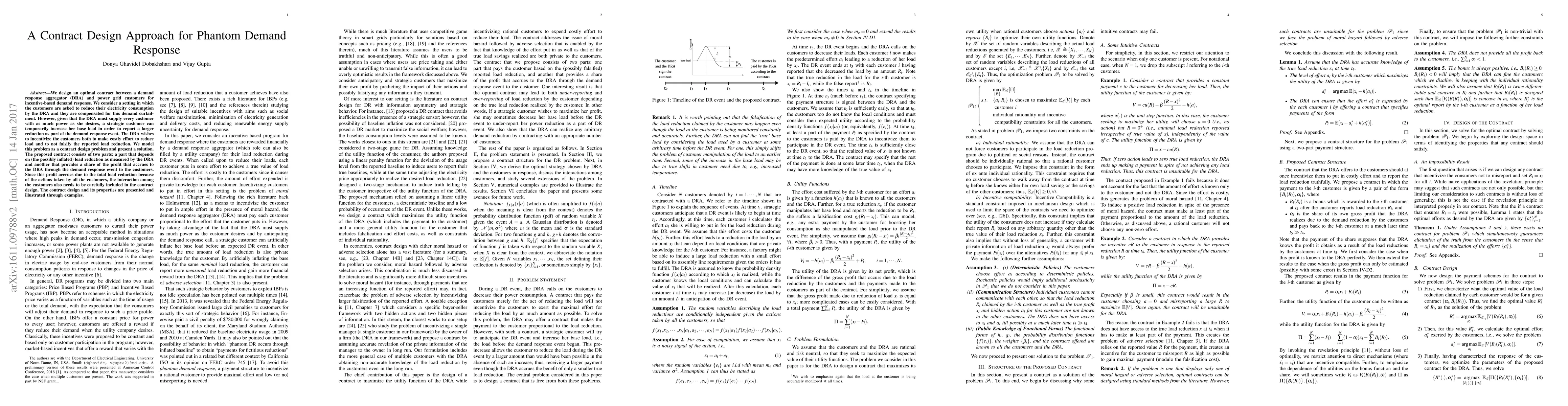 This paper proposes an optimal contract for incentivizing power grid customers to participate in demand response while preventing strategic load inflation. The contract includes both a performance-based component and a profit-sharing component to ensure truthful reporting and collective load reduction.