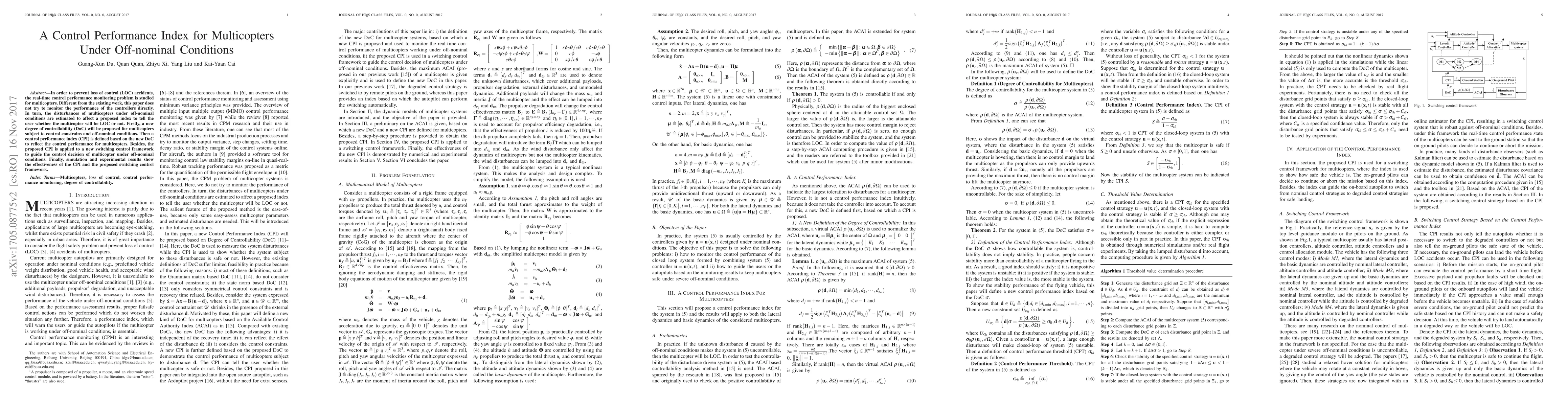 The main technical contribution of this research is the development of a control performance index for multicopters.