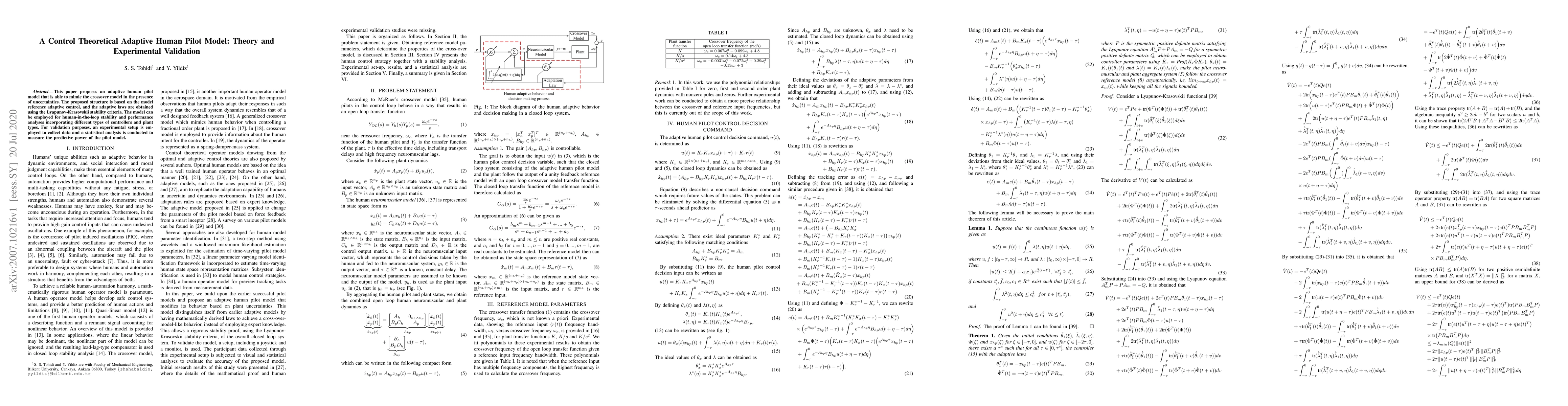 A new adaptive human pilot model is proposed to mimic human behavior in uncertain conditions, using a model reference adaptive control structure. The model was experimentally validated through data collection and statistical analysis to measure its predictive power.