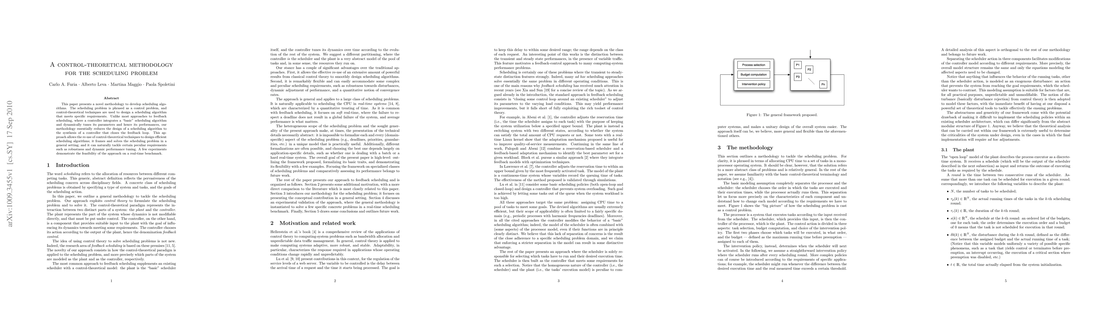 The paper presents a control-theoretical methodology for scheduling problems, reducing the design of a scheduling algorithm to the synthesis of a controller that closes the feedback loop, allowing the reuse of control-theoretical techniques to design efficient scheduling algorithms.