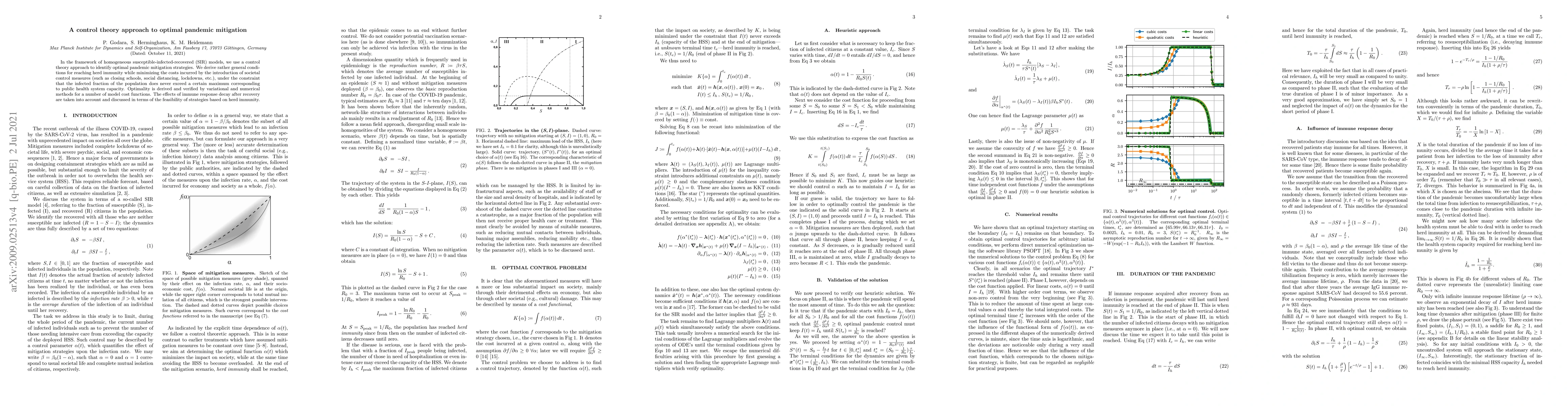 In the framework of homogeneous susceptible-infected-recovered (SIR) models, we use a control theory approach to identify optimal pandemic mitigation strategies. We derive rather general conditions for reaching herd immunity while minimizing the costs incurred by the introduction of societal control measures (such as closing schools, social distancing, lockdowns, etc.), under the constraint that the infected fraction of the population does never exceed a certain maximum corresponding to public health system capacity. Optimality is derived and verified by variational and numerical methods for a number of model cost functions. The effects of immune response decay after recovery are taken into account and discussed in terms of the feasibility of strategies based on herd immunity.
