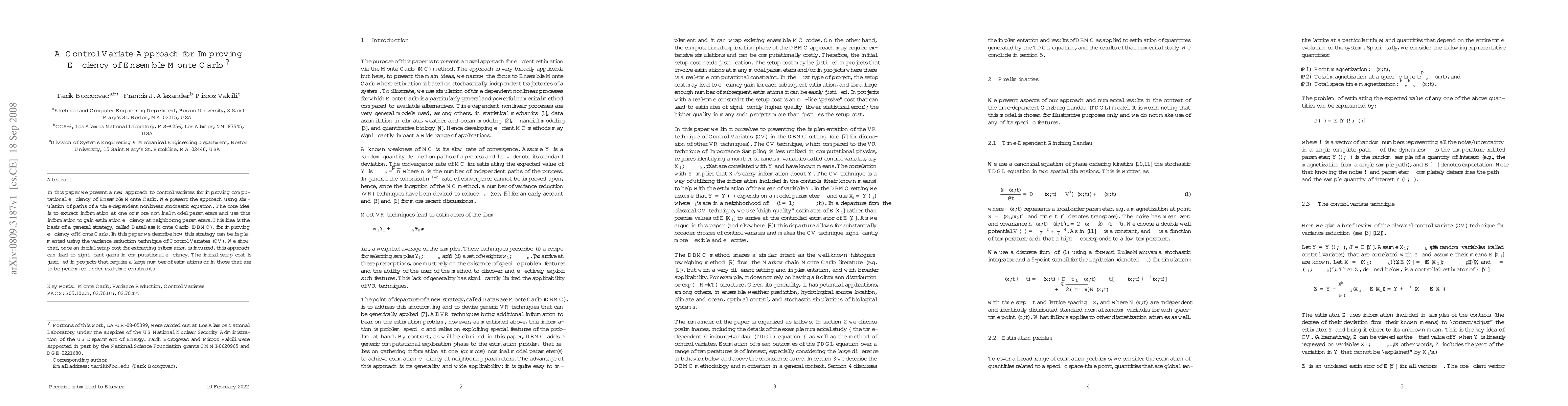 This paper introduces a novel control variate approach, DataBase Monte Carlo (DBMC), to enhance the efficiency of Ensemble Monte Carlo simulations. By leveraging information from nominal model parameters, DBMC significantly reduces computational costs, especially beneficial for large-scale or real-time estimation projects.