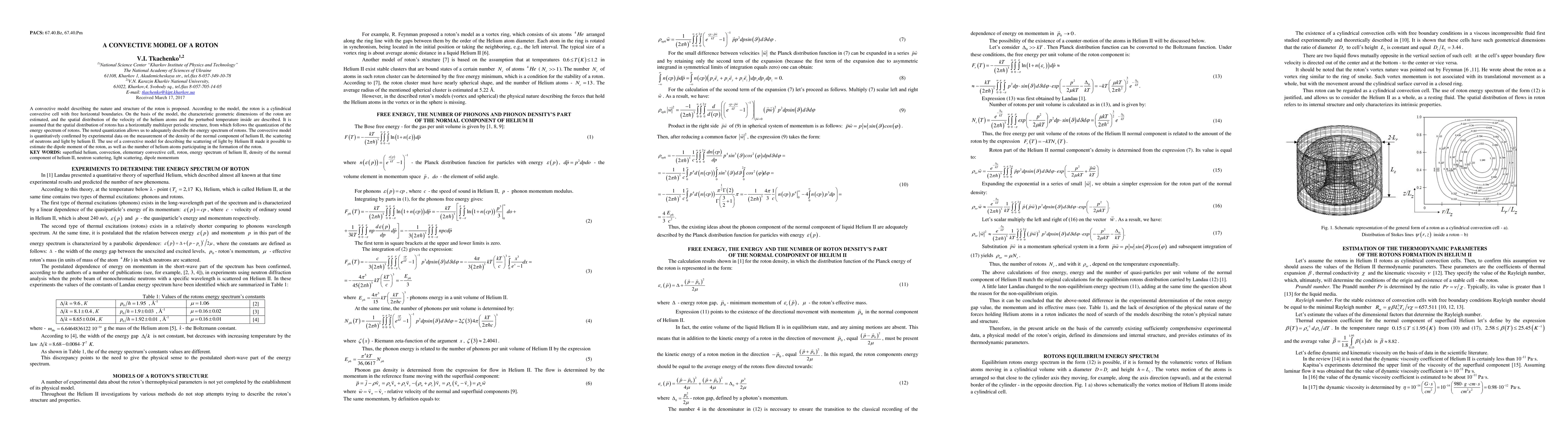 This paper proposes a convective model to describe the structure and nature of a roton, suggesting it is a cylindrical convective cell with free horizontal boundaries. The model quantitatively confirms experimental data and estimates the dipole moment and number of helium atoms involved in roton formation.