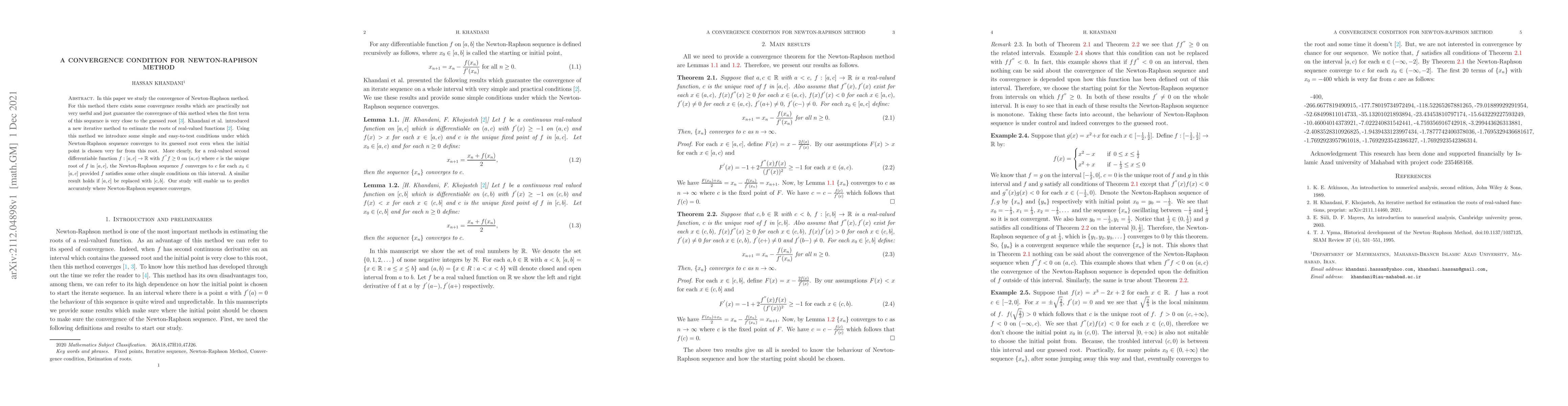 This paper introduces new convergence conditions for the Newton-Raphson method, providing simple criteria that ensure convergence even when the initial guess is far from the root. It demonstrates that under specific conditions, the method converges for any starting point within the interval containing the unique root.