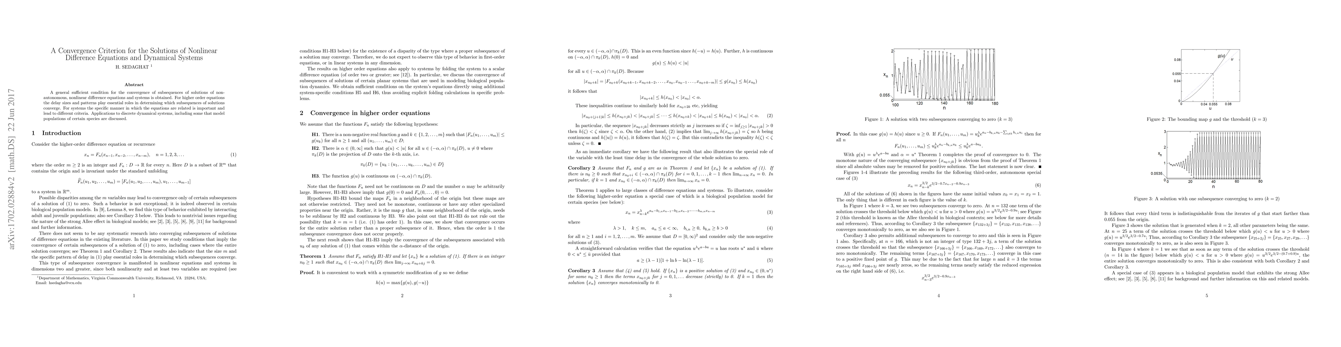 A general sufficient condition for the convergence of subsequences of solutions of non-autonomous, nonlinear difference equations and systems is obtained. For higher order equations the delay sizes and patterns play essential roles in determining which subsequences of solutions converge. For systems the specific manner in which the equations are related is important and lead to different criteria. Applications to discrete dynamical systems, including some that model populations of certain species are discussed.