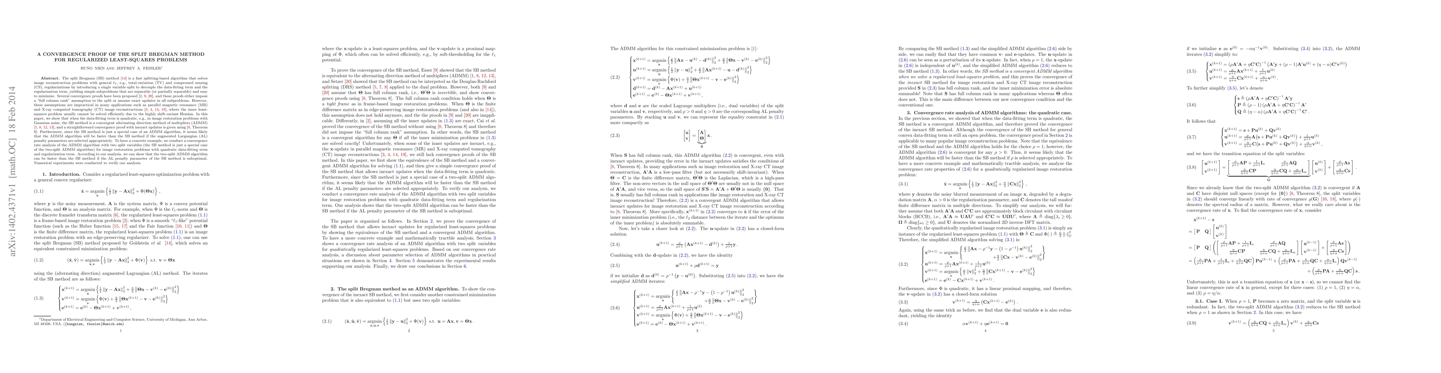 The split Bregman (SB) method [T. Goldstein and S. Osher, SIAM J. Imaging Sci., 2 (2009), pp. 323-43] is a fast splitting-based algorithm that solves image reconstruction problems with general l1, e.g., total-variation (TV) and compressed sensing (CS), regularizations by introducing a single variable split to decouple the data-fitting term and the regularization term, yielding simple subproblems that are separable (or partially separable) and easy to minimize. Several convergence proofs have been proposed, and these proofs either impose a "full column rank" assumption to the split or assume exact updates in all subproblems. However, these assumptions are impractical in many applications such as the X-ray computed tomography (CT) image reconstructions, where the inner least-squares problem usually cannot be solved efficiently due to the highly shift-variant Hessian. In this paper, we show that when the data-fitting term is quadratic, the SB method is a convergent alternating direction method of multipliers (ADMM), and a straightforward convergence proof with inexact updates is given using [J. Eckstein and D. P. Bertsekas, Mathematical Programming, 55 (1992), pp. 293-318, Theorem 8]. Furthermore, since the SB method is just a special case of an ADMM algorithm, it seems likely that the ADMM algorithm will be faster than the SB method if the augmented Largangian (AL) penalty parameters are selected appropriately. To have a concrete example, we conduct a convergence rate analysis of the ADMM algorithm using two splits for image restoration problems with quadratic data-fitting term and regularization term. According to our analysis, we can show that the two-split ADMM algorithm can be faster than the SB method if the AL penalty parameter of the SB method is suboptimal. Numerical experiments were conducted to verify our analysis.