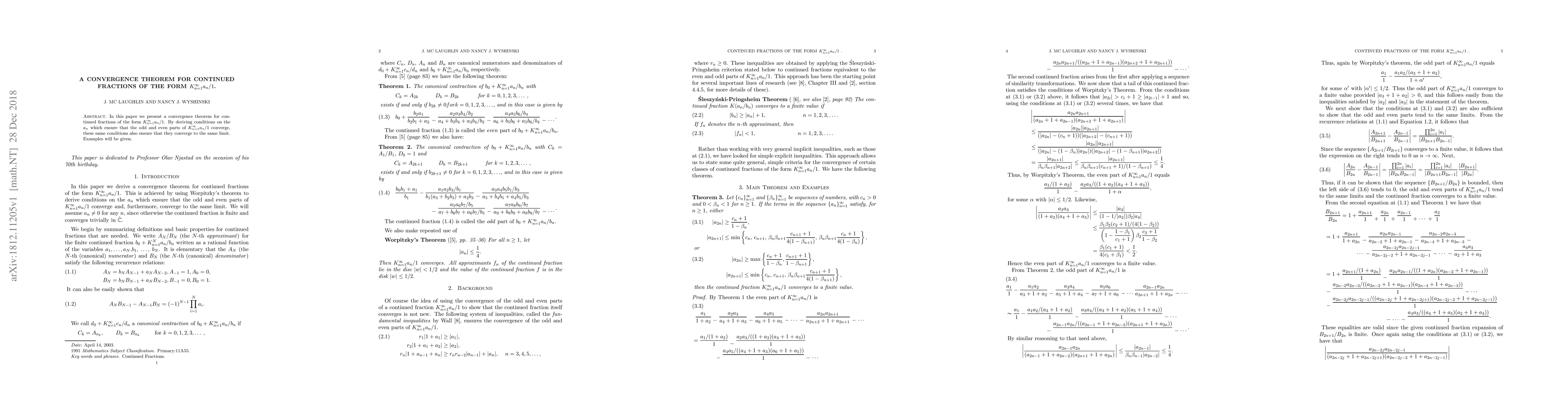 In this paper we present a convergence theorem for continued fractions of the form $K_{n=1}^{\infty}a_{n}/1$. By deriving conditions on the $a_{n}$ which ensure that the odd and even parts of $K_{n=1}^{\infty}a_{n}/1$ converge, these same conditions also ensure that they converge to the same limit. Examples will be given.