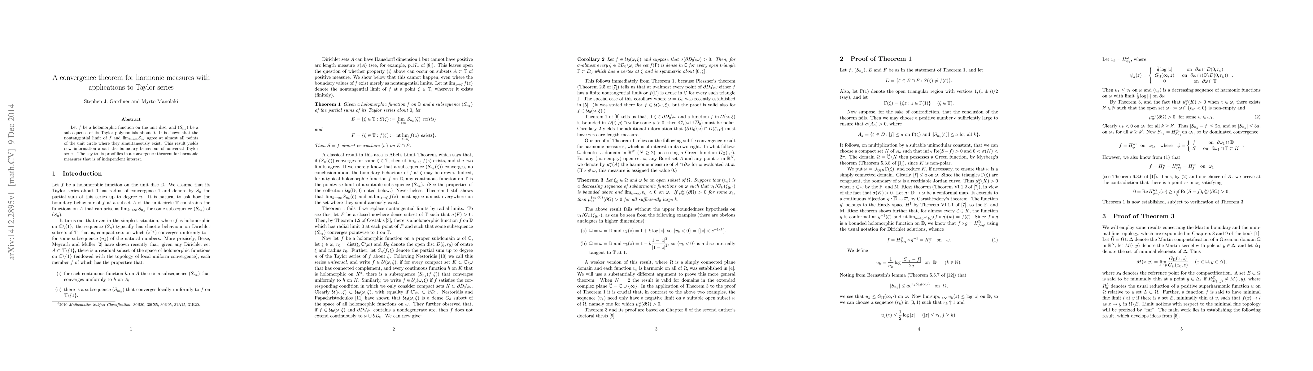 Let $f$ be a holomorphic function on the unit disc, and $(S_{n_{k}})$ be a subsequence of its Taylor polynomials about $0$. It is shown that the nontangential limit of $f$ and lim$_{k\rightarrow \infty }S_{n_{k}}$ agree at almost all points of the unit circle where they simultaneously exist. This result yields new information about the boundary behaviour of universal Taylor series. The key to its proof lies in a convergence theorem for harmonic measures that is of independent interest.