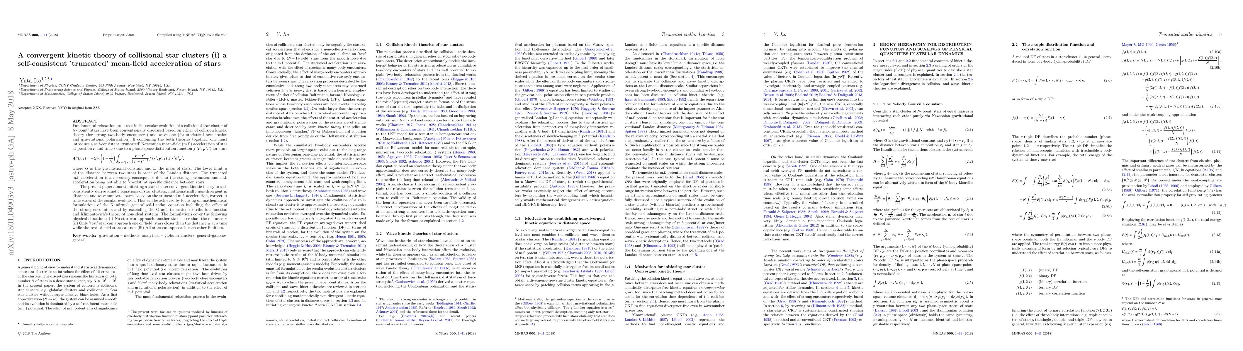 Fundamental relaxation processes in the secular evolution of a collisional star cluster of $N$-'point' stars have been conventionally discussed based on either of collision kinetic theory (for strong two-body encounters) and wave one (for statistical acceleration and gravitational polarization). If combining the both theories together, one must introduce a self-consistent 'truncated' Newtonian mean-field (m.f.) acceleration of star at position $r$ and time $t$ due to a phase-space distribution function $f\left(r', p',t\right)$ for stars $A^{\triangle}(r,t)=-Gm\left(1-\frac{1}{N}\right)\int_{\mid r-r' \mid > \triangle}\frac{r-r'}{\mid r-r' \mid^{3}} f\left(r',p',t\right)\text{d}^{3}{r'}\text{d}^{3}{p'},$ where $G$ is the gravitational constant and $m$ the mass of stars. The lower limit $\triangle$ of the distance between two stars is order of the Landau distance. The truncated m.f. acceleration is a necessary consequence due to the strong encounters and m.f. acceleration being not able to 'coexist' at specific distance between stars. The present paper aims at initiating a star-cluster convergent kinetic theory to self-consistently derive kinetic equations of star clusters, mathematically non-divergent in distance- and wavenumber- spaces based on the truncated m.f. acceleration, correct at time scales of the secular evolution. This will be achieved by focusing on mathematical formulations of the Kandrup's generalised-Landau equation including the effect of the strong encounters and by extending the Grad's truncated distribution function and Klimontovich's theory of non-ideal systems.