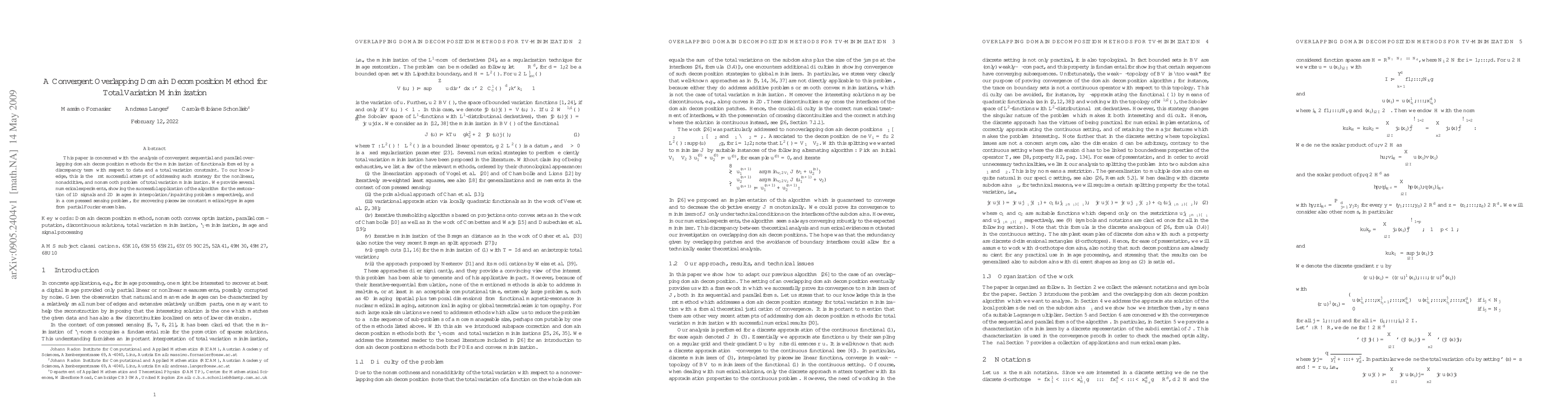 This paper introduces a convergent overlapping domain decomposition method for total variation minimization, addressing a nonlinear, nonadditive, and nonsmooth problem. Numerical experiments demonstrate successful restoration of 1D signals, 2D images, and recovery of compressed sensing medical-type images.