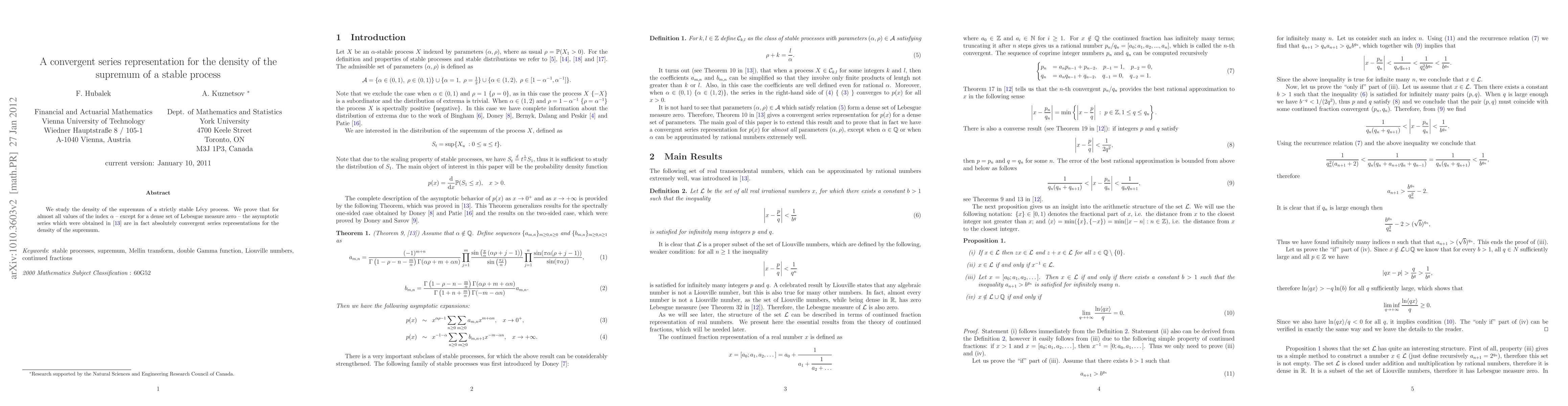 This paper investigates the density of the supremum of a strictly stable Lévy process, proving that the asymptotic series from Kuznetsov (2010) provide absolutely convergent representations for almost all values of the index, except for a negligible set.