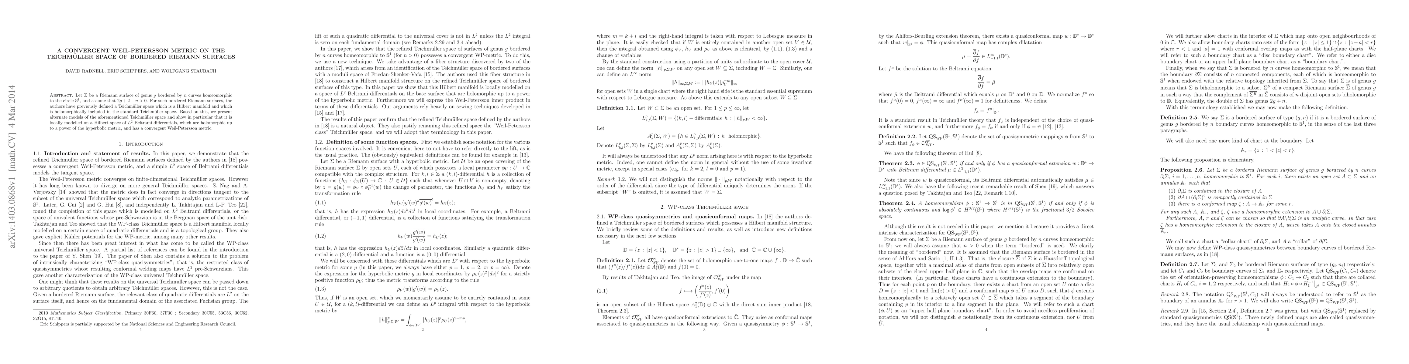 This paper introduces alternate models for the Teichmüller space of bordered Riemann surfaces, demonstrating that it locally models a Hilbert space of $L^2$ Beltrami differentials and possesses a convergent Weil-Petersson metric. The convergence of this metric is established under the condition that the genus $g$ and the number of boundary curves $n$ satisfy $2g+2-n>0$.