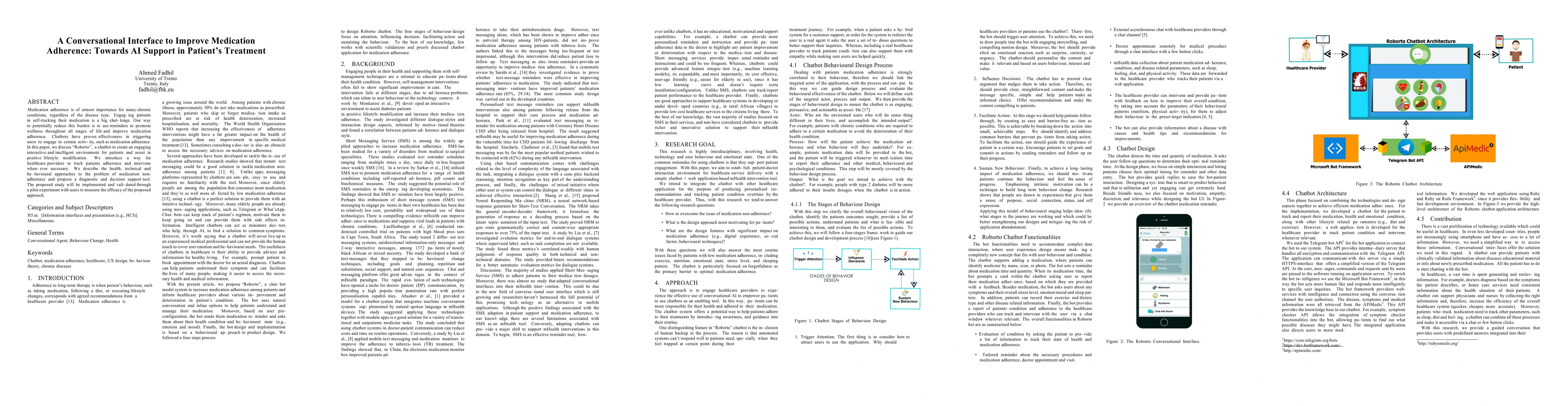 This paper introduces "Roborto," a chatbot designed to enhance medication adherence through engaging reminders and interactive support, aiming to assist patients in self-tracking their medication. The study proposes a diagnostic and decision support tool for healthcare providers to monitor and intervene in medication adherence, validated through a pilot experiment.