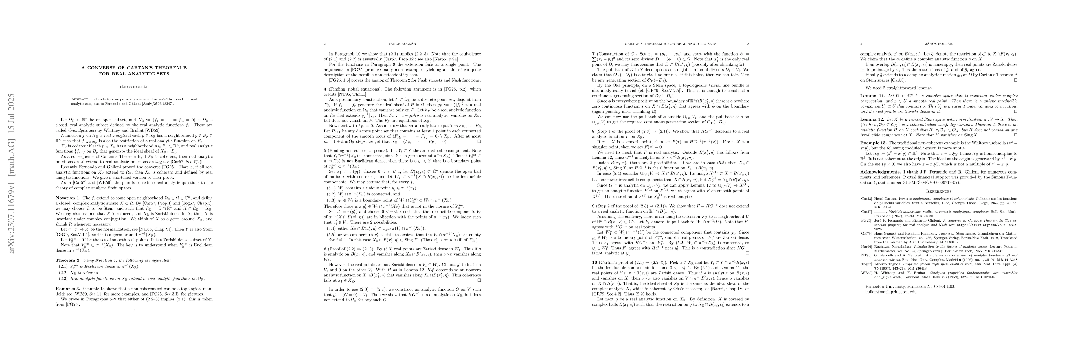 In this lecture we prove a converse to Cartan's Theorem B for real analytic sets, due to Fernando and Ghiloni [arXiv:2506.18347].