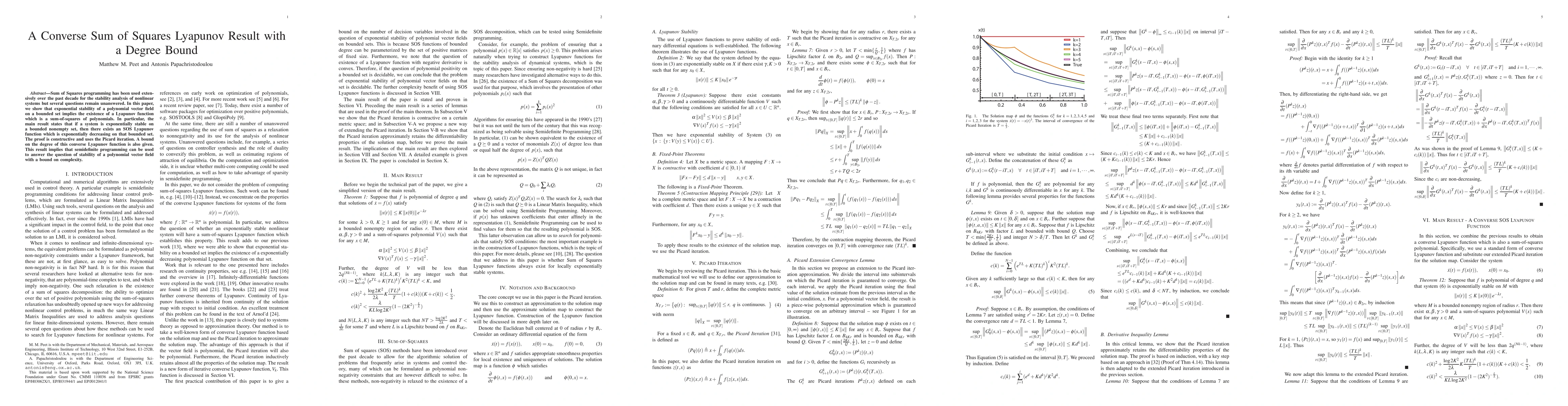This paper establishes a converse Lyapunov result for sum of squares programming, proving that exponential stability of a polynomial vector field on a bounded set guarantees the existence of an exponentially decreasing sum-of-squares Lyapunov function. The proof is constructive and provides a degree bound for this Lyapunov function, enabling semidefinite programming to assess stability with complexity limits.