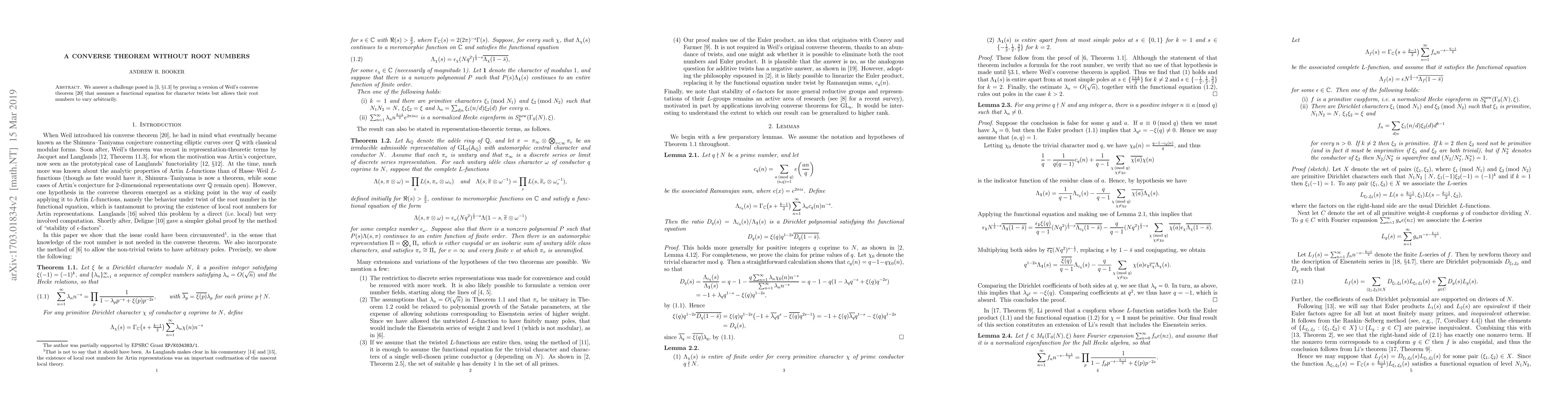 The paper proves a variant of Weil's converse theorem without requiring fixed root numbers for character twists, addressing a challenge presented in a prior work. This advancement allows for more flexibility in the application of the theorem.
