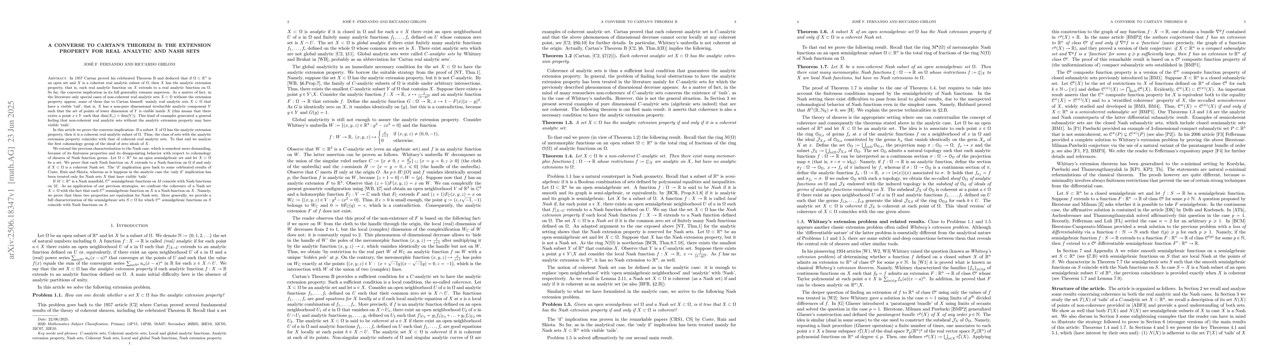 In 1957 Cartan proved his celebrated Theorem B and deduced that if $\Omega\subset{\mathbb R}^n$ is an open set and $X$ is a coherent real analytic subset of $\Omega$, then $X$ has the analytic extension property, that is, each real analytic function on $X$ extends to a real analytic function on $\Omega$. The converse implication in its full generality remains unproven. In the literature only special cases of non-coherent real analytic sets $X\subset\Omega$ without the extension property appear, some of them due to Cartan himself: mainly real analytic sets $X\subset\Omega$ that have a visible `tail'. We prove the converse implication: If a subset $X$ of $\Omega$ has the analytic extension property, it is a coherent real analytic subset of $\Omega$. The class of sets with the analytic extension property coincides with that of coherent real analytic sets. We extend the previous characterization to the Nash case, which is somehow more demanding, because of its finiteness properties and its disappointing behavior with respect to cohomology of sheaves of Nash function germs. Let $\Omega\subset{\mathbb R}^n$ be an open semialgebraic set and let $X\subset\Omega$ be a set. We prove that each Nash function on $X$ extends to a Nash function on $\Omega$ if and only if $X\subset\Omega$ is a coherent Nash set. The `if' implication goes back to some celebrated results of Coste, Ruiz and Shiota. If $M\subset{\mathbb R}^n$ is a Nash manifold, ${\mathcal C}^\infty$ semialgebraic functions on $M$ coincide with Nash functions on $M$. As an application, we confront the coherence of a Nash set $X\subset\Omega$ with the fact that each ${\mathcal C}^\infty$ semialgebraic function on $X$ is a Nash function on $X$. We provide a full characterization of the semialgebraic sets $S\subset\Omega$ for which ${\mathcal C}^\infty$ semialgebraic functions on $S$ coincide with Nash functions on $S$.