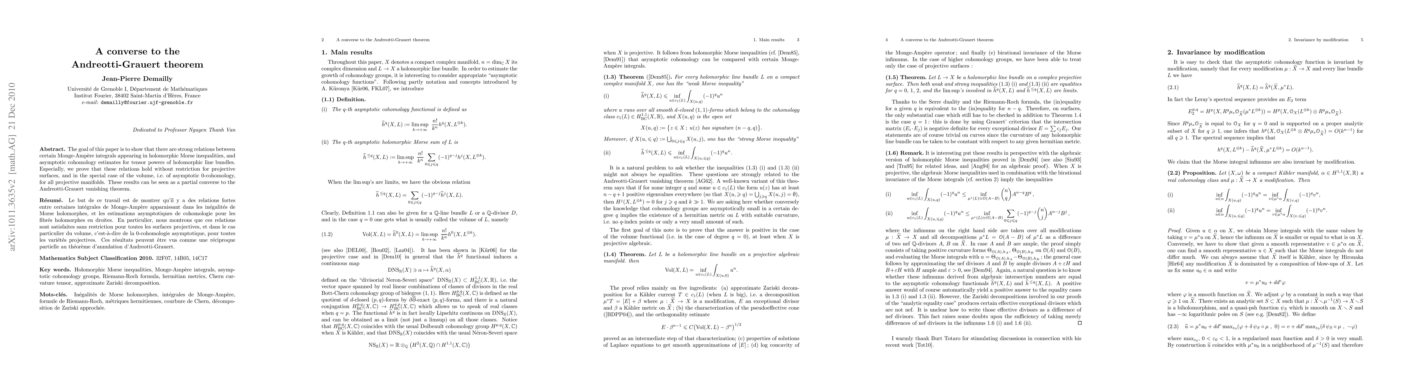 The goal of this paper is to show that there are strong relations between certain Monge-Amp\`ere integrals appearing in holomorphic Morse inequalities, and asymptotic cohomology estimates for tensor powers of holomorphic line bundles. Especially, we prove that these relations hold without restriction for projective surfaces, and in the special case of the volume, i.e. of asymptotic 0-cohomology, for all projective manifolds. These results can be seen as a partial converse to the Andreotti-Grauert vanishing theorem.