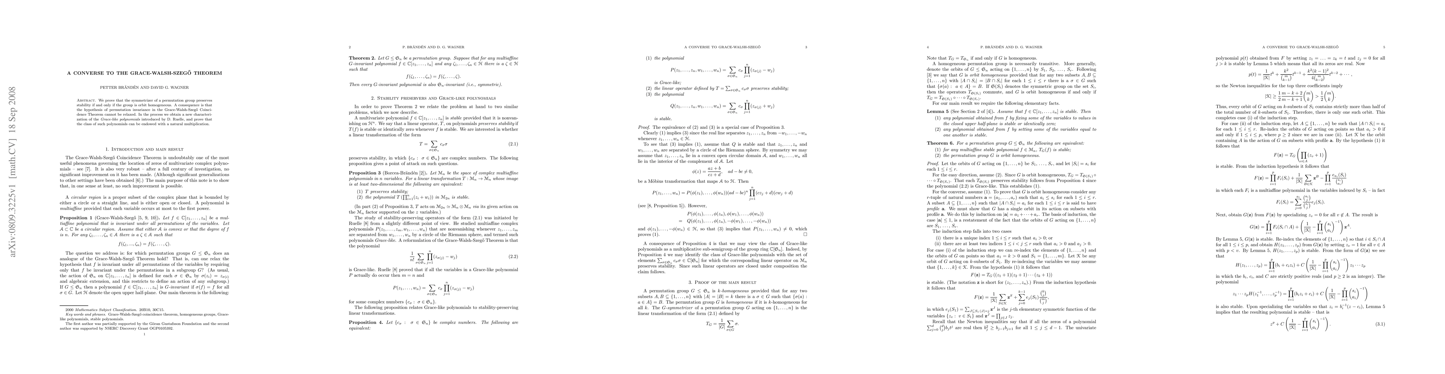 This paper proves that a polynomial's stability is preserved by the symmetrizer of a permutation group if and only if the group is orbit homogeneous, reinforcing the necessity of permutation invariance in the Grace-Walsh-Szegő Coincidence Theorem. Additionally, it characterizes Grace-like polynomials and introduces a natural multiplication for this class.