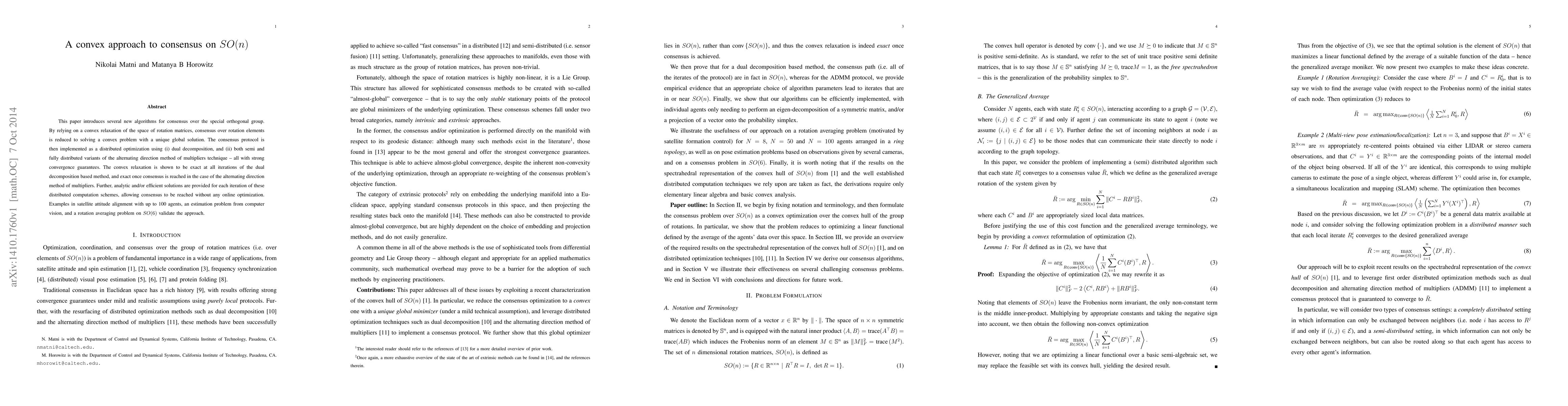 A distributed optimization approach using dual decomposition and ADMM was employed to solve the consensus problem on SO(n)