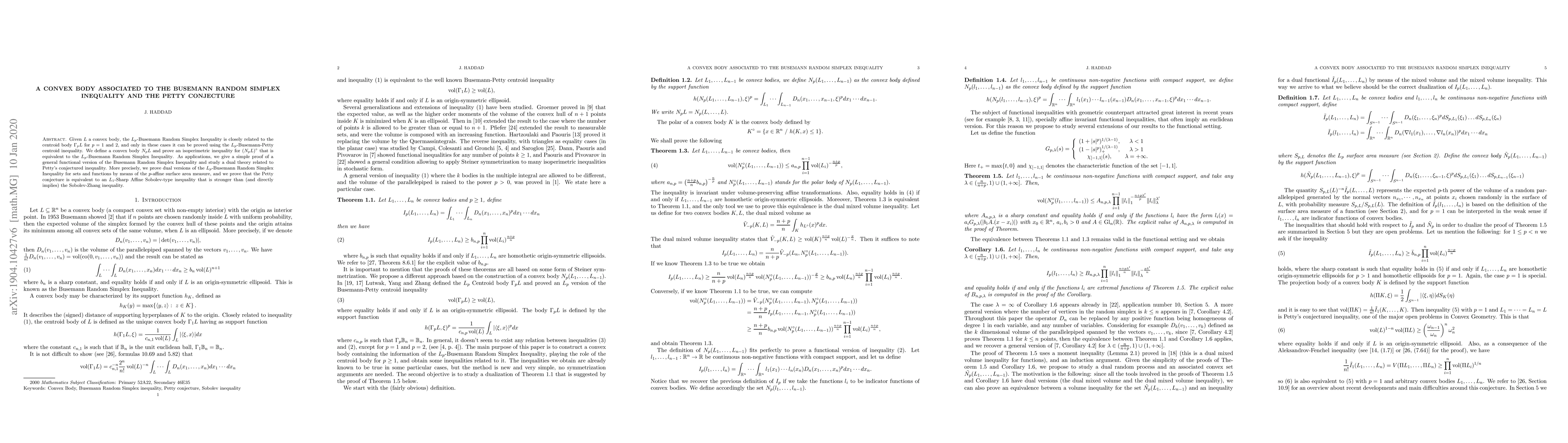 This paper introduces a convex body $N_p L$ and proves an isoperimetric inequality for its polar body, which is equivalent to the $L_p$-Busemann Random Simplex Inequality. It also explores dual versions related to Petty's conjecture, showing its equivalence to a stronger $L_1$-Sharp Affine Sobolev-type inequality.