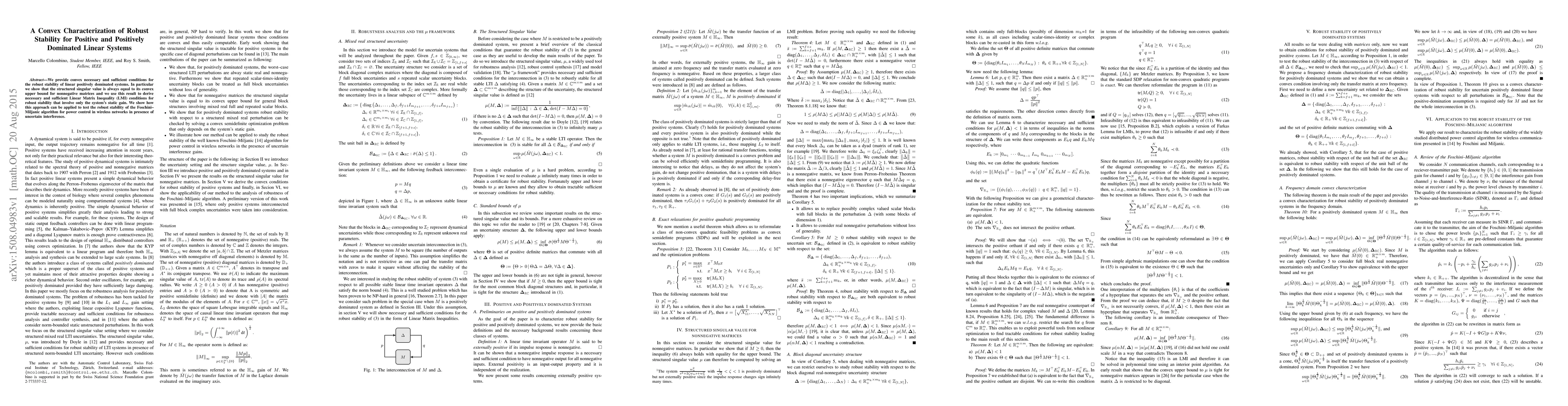 The paper provides convex necessary and sufficient conditions for robust stability in positively dominated linear systems, offering a new approach to test the robust stability of complex systems like the Foschini-Miljanic algorithm.