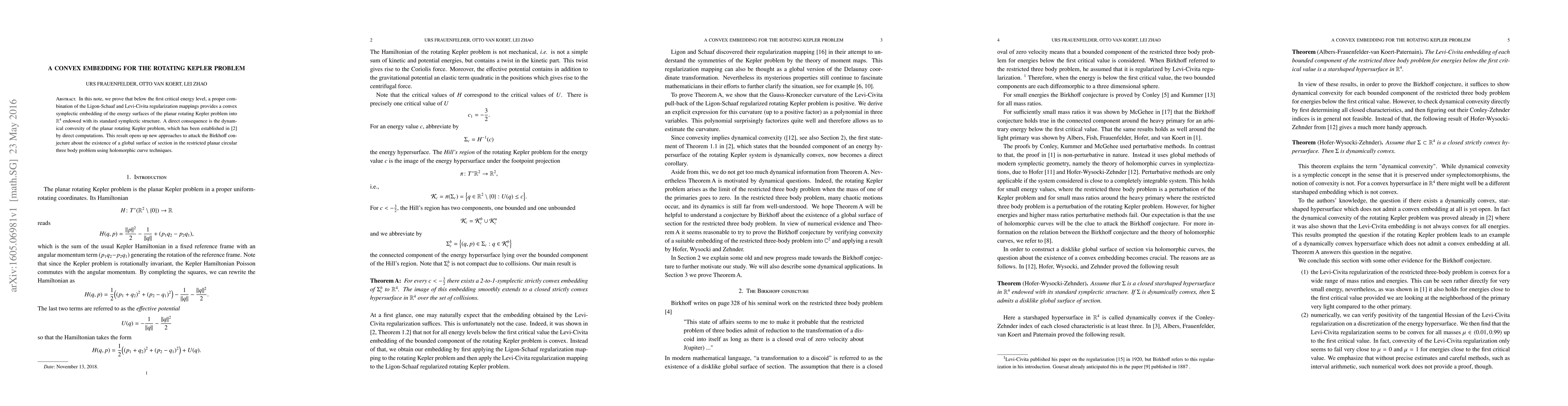 This paper demonstrates a convex symplectic embedding of the planar rotating Kepler problem into $R^4$ via a combination of Ligon-Schaaf and Levi-Civita regularizations, establishing dynamical convexity and offering new methods to tackle the Birkhoff conjecture.