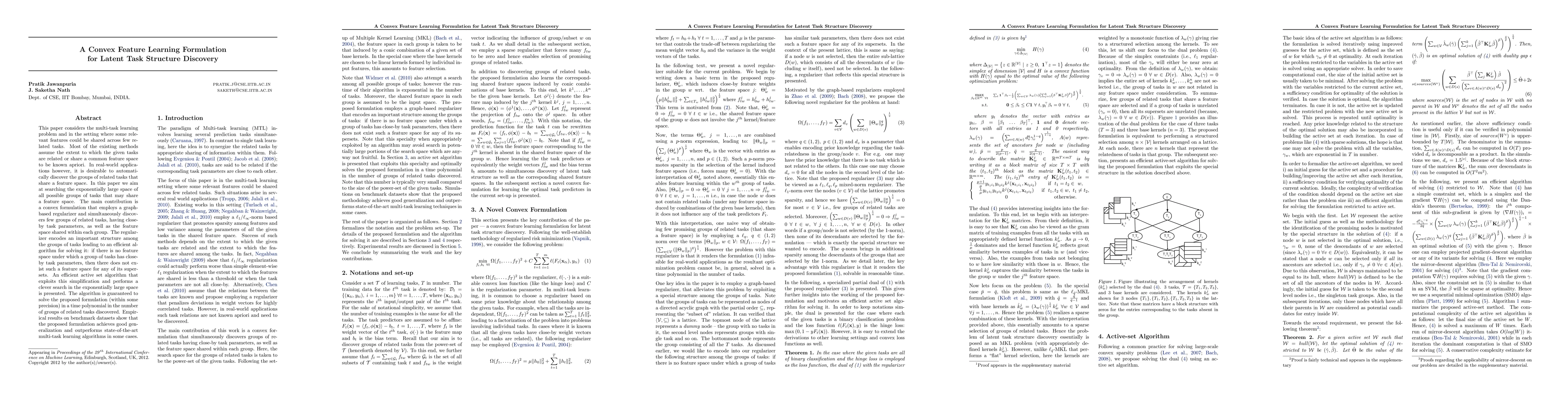 This paper proposes a new method for multi-task learning that automatically discovers groups of related tasks sharing a common feature space, improving upon existing methods' assumptions about prior knowledge of task relationships.