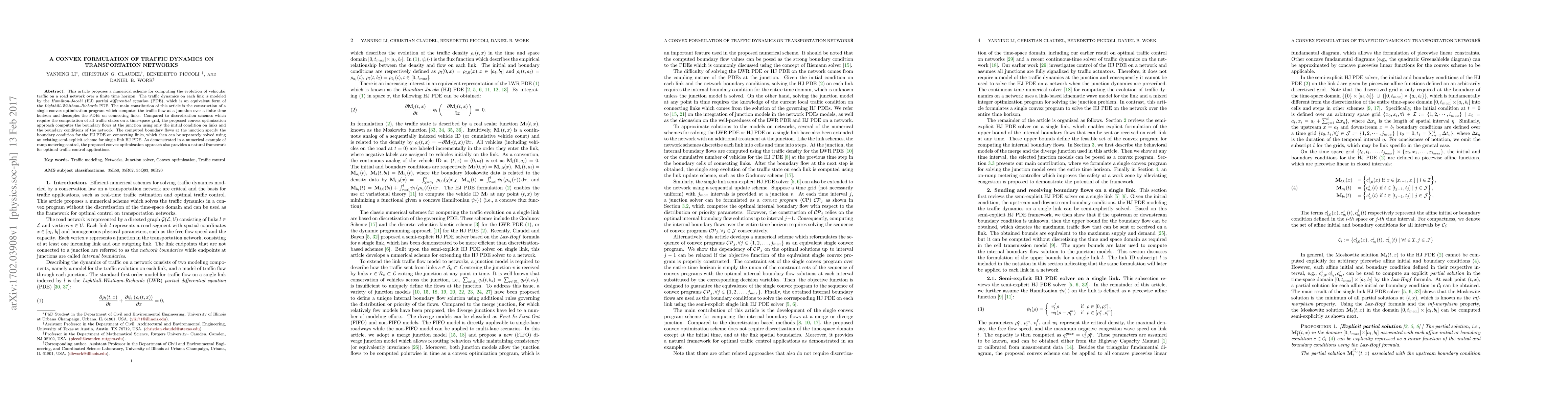 A new approach uses convex optimization to solve traffic dynamics on transportation networks, reducing computational complexity and enabling efficient control of traffic flow.