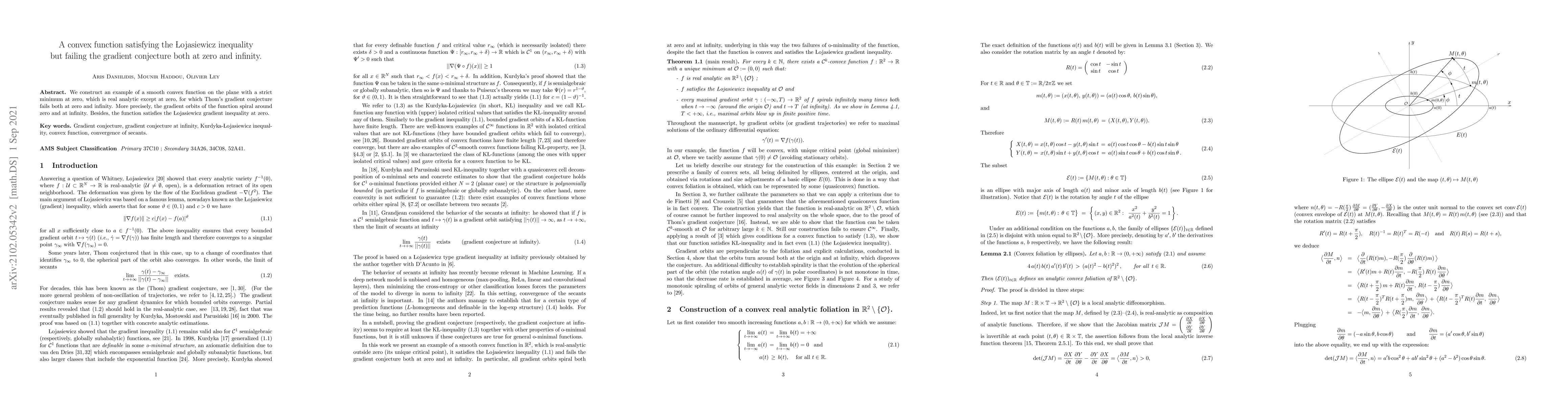 Summary: This paper presents a smooth convex function that satisfies the Lojasiewicz inequality at zero but fails Thom's gradient conjecture both at zero and infinity, with gradient orbits spiraling around these points. The function is real analytic except at zero.