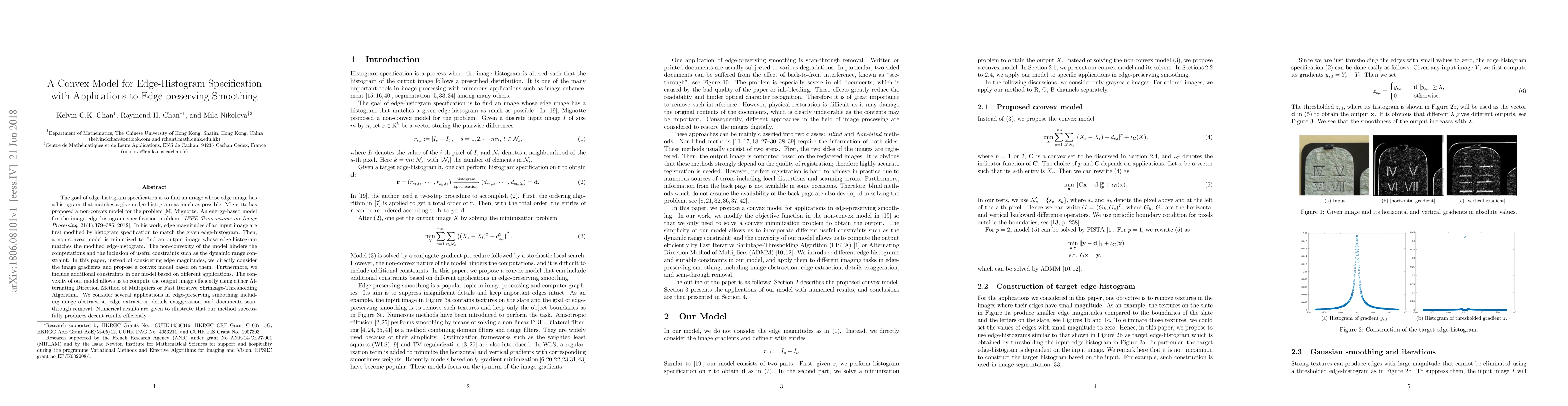 This paper proposes a convex model for edge-histogram specification, directly utilizing image gradients instead of edge magnitudes, which allows efficient computation and inclusion of dynamic range constraints. The method is applied to edge-preserving smoothing tasks, demonstrating successful results in applications like image abstraction and document scan-through removal.