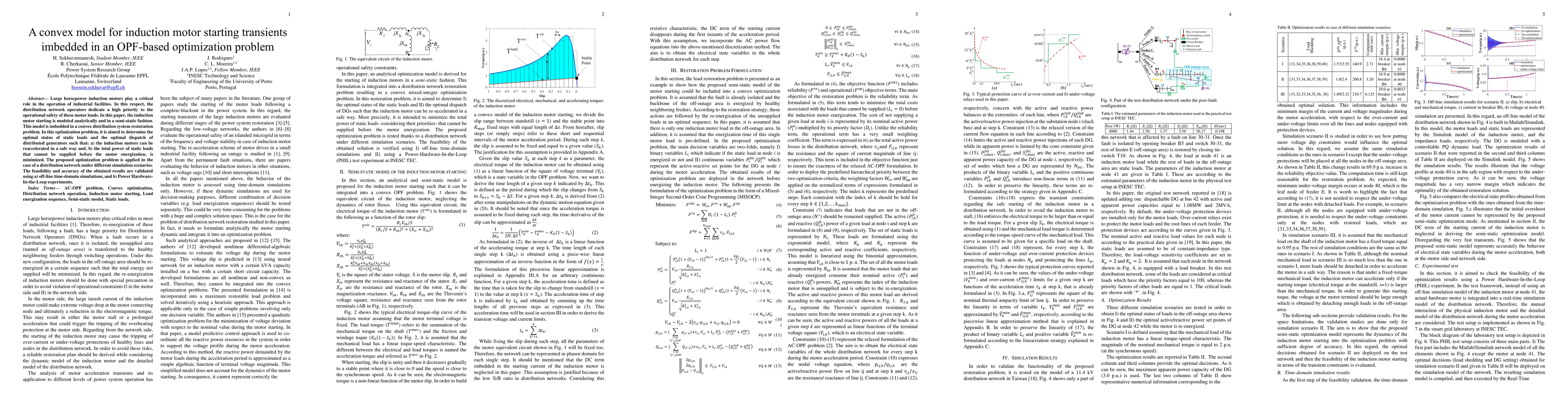 This paper presents an analytical model for induction motor starting transients, embedded in an optimization problem to ensure safe reacceleration and minimize unsupplied static load power. The feasibility and accuracy of the proposed convex optimization approach are validated through simulations and Power Hardware-In-the-Loop experiments.