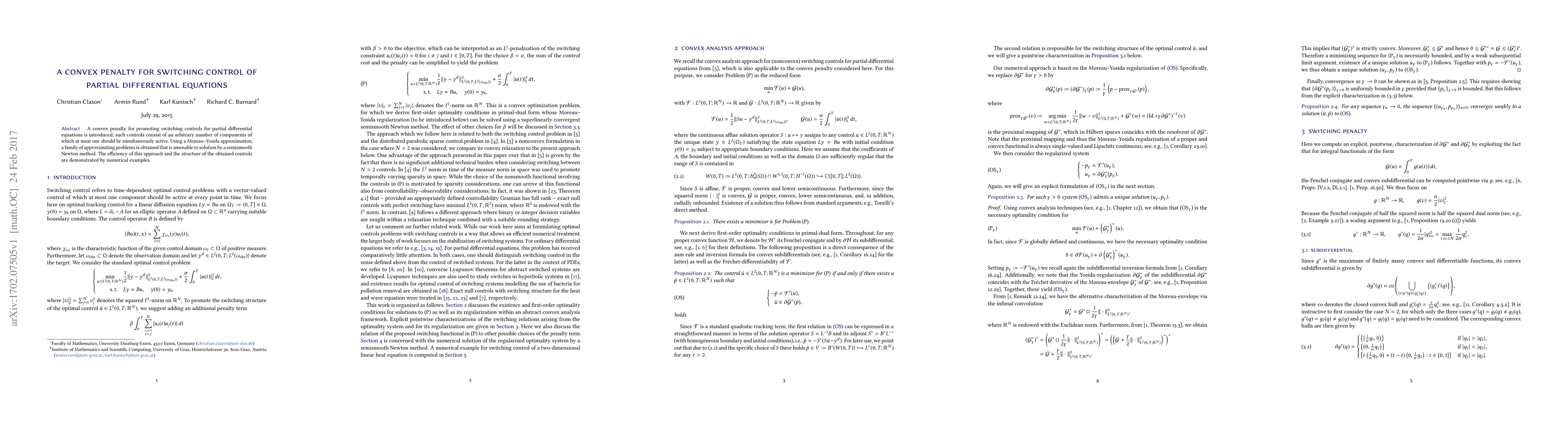 A convex penalty for promoting switching controls for partial differential equations is introduced; such controls consist of an arbitrary number of components of which at most one should be simultaneously active. Using a Moreau-Yosida approximation, a family of approximating problems is obtained that is amenable to solution by a semismooth Newton method. The efficiency of this approach and the structure of the obtained controls are demonstrated by numerical examples.