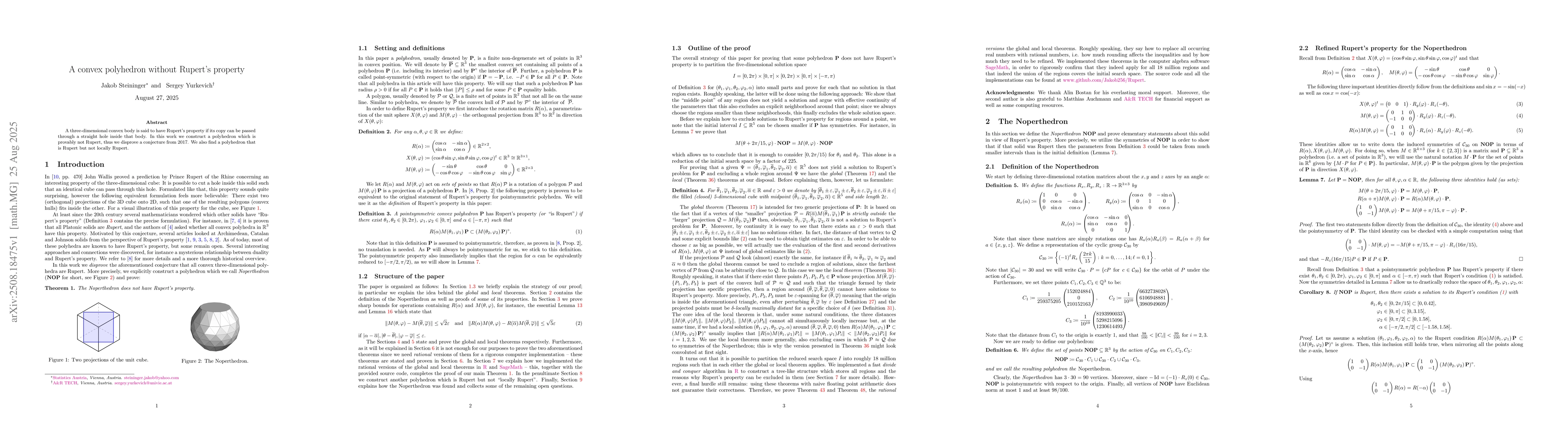 A three-dimensional convex body is said to have Rupert's property if its copy can be passed through a straight hole inside that body. In this work we construct a polyhedron which is provably not Rupert, thus we disprove a conjecture from 2017. We also find a polyhedron that is Rupert but not locally Rupert.