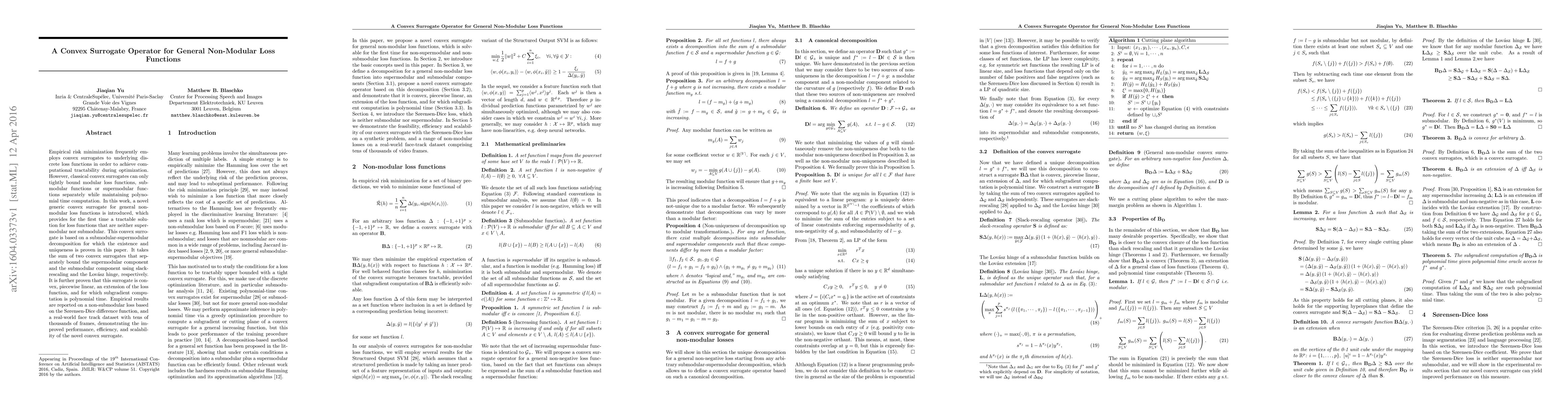 This paper introduces a novel convex surrogate operator for general non-modular loss functions, providing a tractable solution for non-supermodular and non-submodular losses. The proposed method decomposes the loss function into supermodular and submodular components, demonstrating improved performance, efficiency, and scalability on empirical tests.