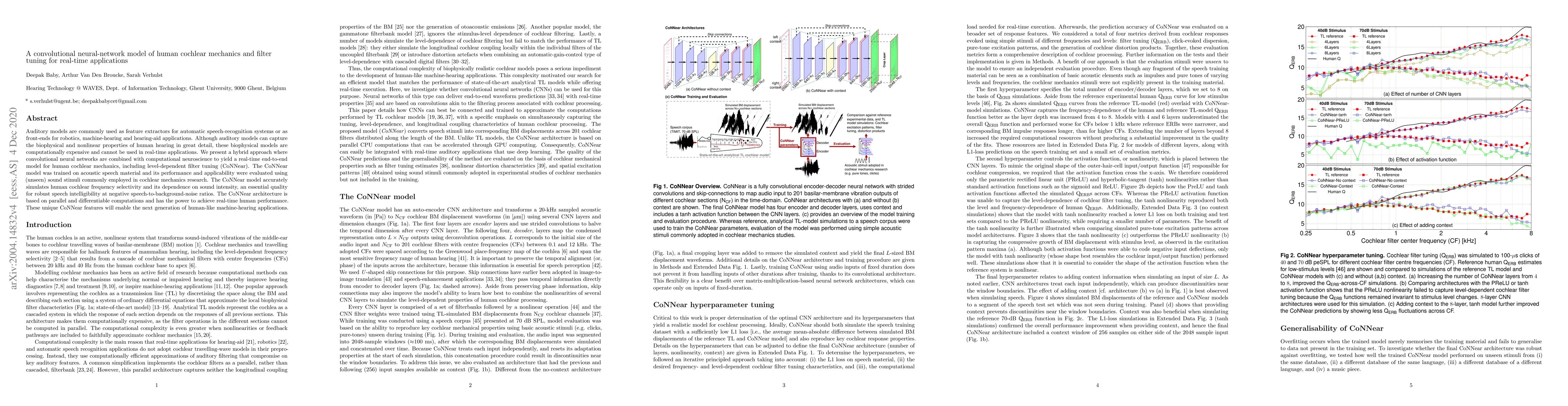 The research presents a hybrid, deep-neural-net and analytical approach to develop a real-time CoNNear model of human cochlear processing, combining expert knowledge from computational auditory neuroscience and machine-learning-based audio processing.