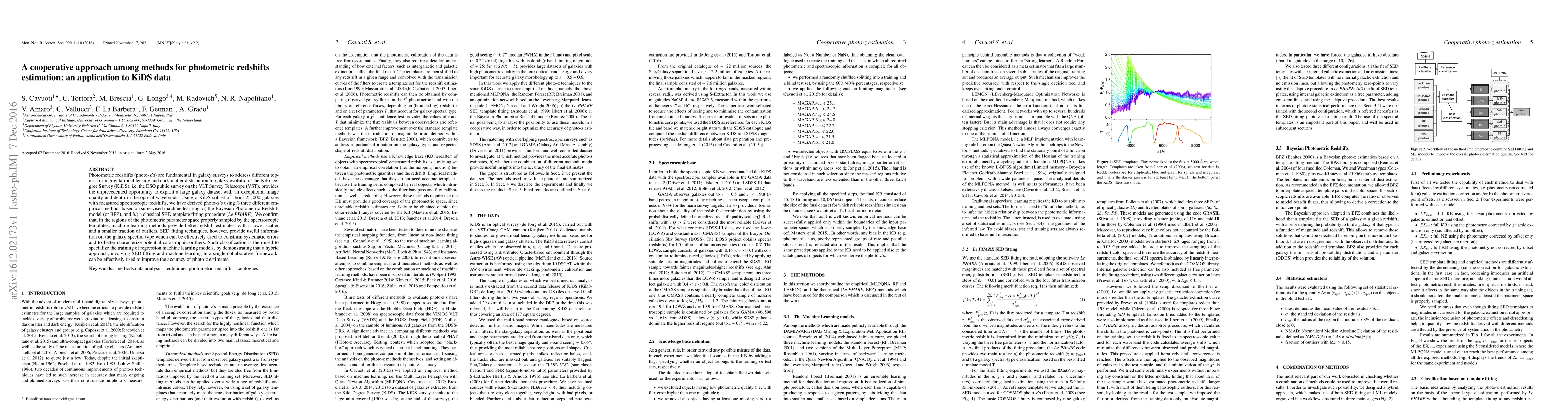 This paper explores a cooperative approach combining various photometric redshift estimation methods, including machine learning and SED fitting, applied to KiDS data. It finds that machine learning methods yield more accurate redshift estimates, while SED fitting provides valuable spectral type information, which enhances the overall accuracy when used in a hybrid model.